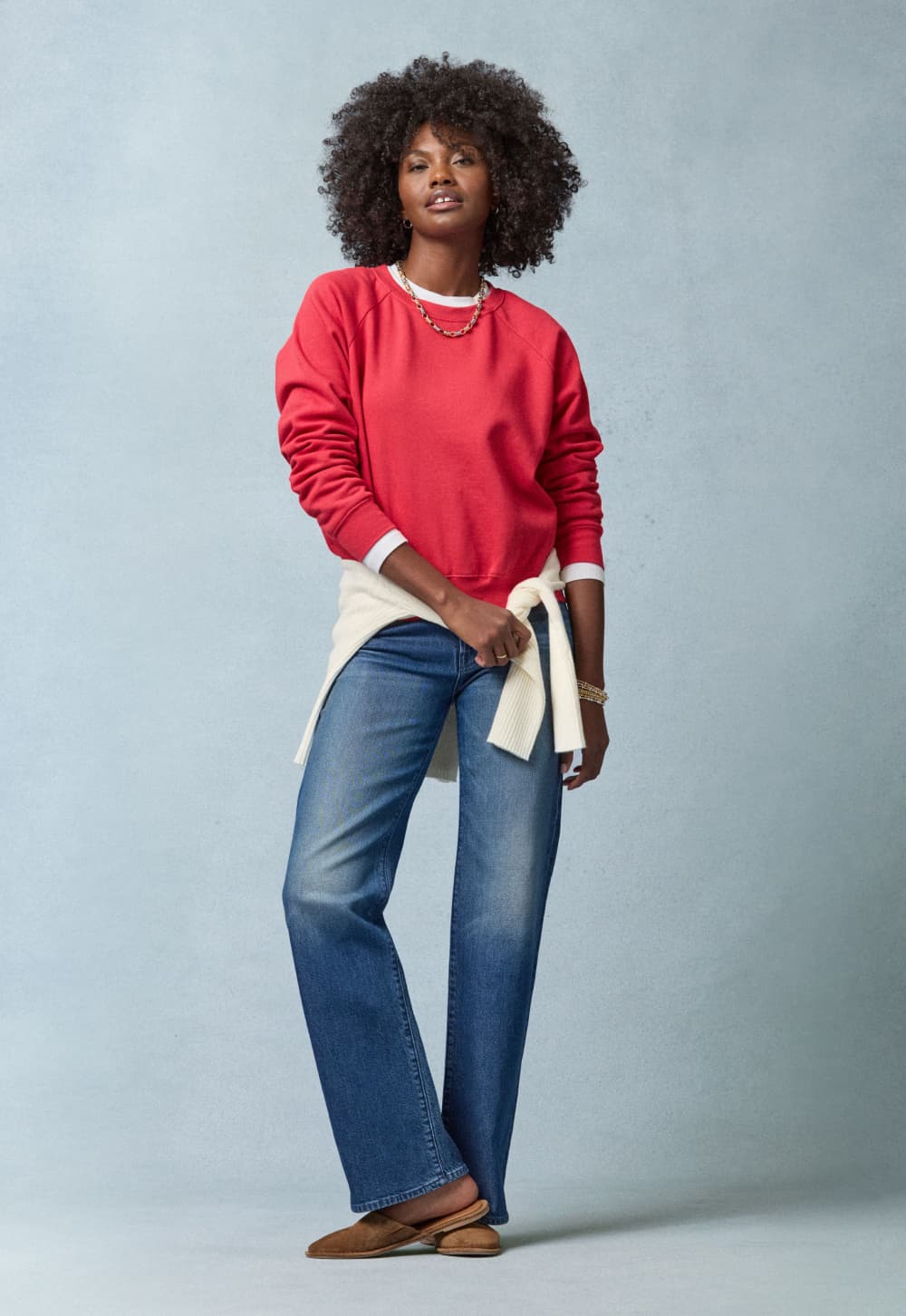 A classic silhouette that’s always in style, our selection of women’s straight leg jeans is sure to complete your wardrobe. Defined by a straight fit from knee to ankle, straight leg jeans are endlessly versatile, making them a must-have staple for your closet. Find your go-to fit with mid-rise or high-waisted straight leg jeans, designed to flatter every figure. Discover the Ever Straight jean from our exclusive EVEREVE denim collection, available in a variety of finishes for every occasion. With blue, white, and black washes, straight leg jeans transition seamlessly from day to night. Shop slim straight jeans, like the Good Legs Straight from Good American, that feature a sleek, fitted shape—ideal for work-to-weekend wear with a polished blazer or fun going out top. Or for jeans with vintage appeal, try a 90s straight jean from AGOLDE with a looser, relaxed design that pairs effortlessly with your go-to tees. Explore straight leg jeans in a variety of lengths, like cuffed and ankle straight jeans to show off your favorite footwear, or full-length straight jeans for an elongating effect. For petite frames 5’4” and under, shop our selection of women’s petite straight leg jeans. And with premium denim brands like MOTHER, KUT From The Kloth, and Paige, you’ll find the best pair of straight leg jeans to instantly elevate your wardrobe. For more denim styles, check out our Denim Guide to shop all jean silhouettes.