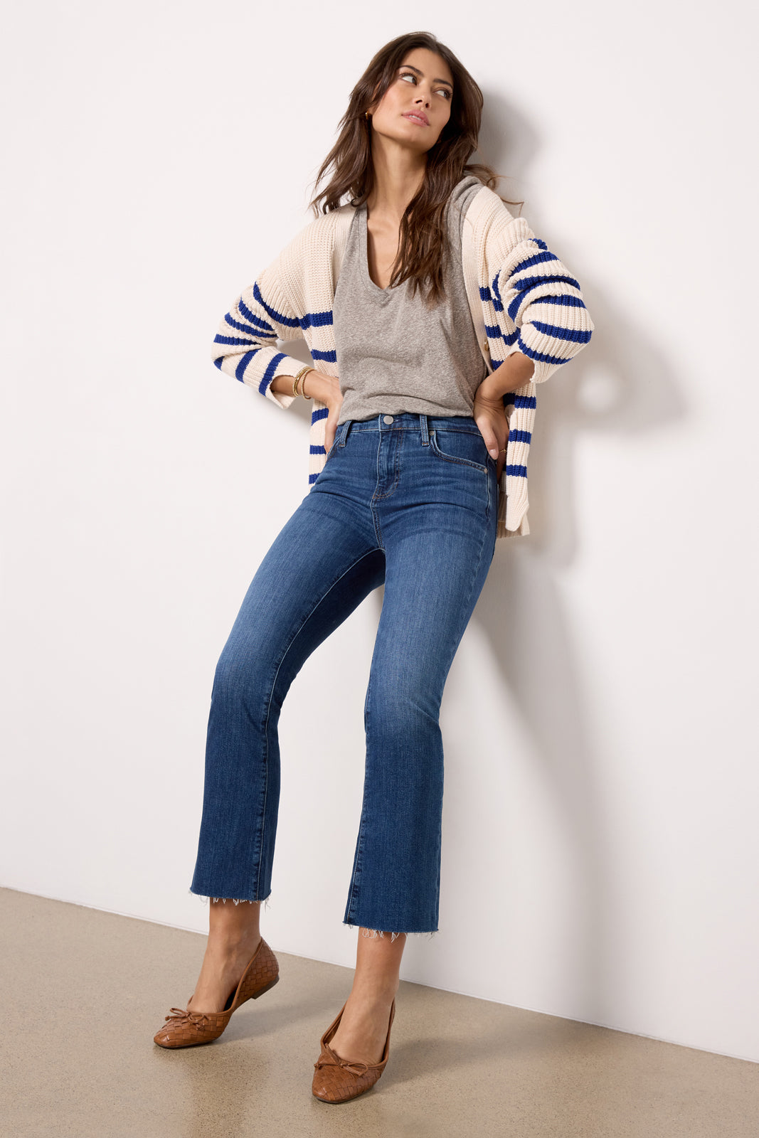 #html-body [data-pb-style=YCND6C1]{justify-content:flex-start;display:flex;flex-direction:column;background-position:left top;background-size:cover;background-repeat:no-repeat;background-attachment:scroll}0:00three days three ways it's been a minute0:03but let's talk about the0:06[Music]0:09day this is a fun day to get dressed for0:12it's frankly just a fun day overall show0:14a little love little extra care tell the0:18people in your life they mean something0:19special to you and let's take a little0:22extra time to make outfit special too so0:25here's the deal three easy looks for0:28getting dressed for Valentine's Day with0:30whether it's a kiddo runaround a gal pal0:32get together or I know kind of a0:34sizzling hot date night we're going to0:37start with the kiddo Gathering so maybe0:39you're volunteering in the classroom0:41maybe you're just having a fun family0:43Den whatever it is you want to pop0:45something on that I know feels in the0:47spirit but not too on the nose this0:50Amber sweatshirt from ever is your0:52answer now one of the things I love0:54about it naturally relaxed but not too0:57oversized so you got this fun rib detail1:00here as well as that little Dorito on1:02the neckline some volume of the seeve1:05but not too much I'm wearing my normal1:07size in this one think it's so darn fun1:10and then that ribbing at the bottom1:11makes it easy for no tuck no fuss no mus1:15now here's what I think makes this1:17outfit interesting I could have gone1:18with a clean denim jean would have1:20looked great but I wanted to add a1:22little bit of Sizzle a little bit of fun1:24and this cut Reese utility does it all1:29lots and lots that's a stretch in this1:30one now I don't know about you but I am1:32definitely getting used to that more1:34relaxed denim feel so here's what I did1:38in this cut I wore my normal size1:41typically in cut in denim I go down a1:44size I went with my normal size in this1:46one gang and I like the way it fits it1:48doesn't feel too skinny doesn't feel too1:50tight it will give a little bit but I1:53think that's okay I think the ease of1:55this kind of silhouette and the utility1:57details is what makes this fit chef's2:01kiss now finishing touches New Balance2:04courtz sneak get yourself a white sneak2:06you will not regret it I promise you2:08will wear this all spring and summer2:09season and then handsfree think warland2:12bag in this fun white patent I know2:15right now it might feel like spring and2:17summer are miles away but they're not2:20and this pop of white I think kind of2:23ushers in the season that we are all2:26looking for plus so versatile and the2:29thing I love the most patent just wipe2:31it down if it gets dirty so easy okay2:33kids look for vday done I've got a fun2:37night out with the girls coming up look2:39number two girls night out it's going to2:43be a fun one we're going to Nodge a2:44Valentine's Day but not too much just2:46enough to I don't know feel in the2:48spirit with this fabulous little bommer2:50from blank so it is layering season and2:54frankly that is not going away it's a2:56trend and it's practical it's one like2:58the two best things happen together I3:00love this jacket from blank because it's3:02not too long but not cropped so you're3:06going to hit right at your waist really3:08help to Define your shape super3:10flattering and this blush color is3:13surprisingly versatile so a really3:16really easy one to pair with anything3:19don't think that this is just something3:21you can pair with your neutrals this is3:23going to look fantastic with denim I3:25love it with black really Chic and kind3:27of an unexpected feminine pairing3:30also will look great with your whites3:32but you can have some fun with this one3:34gang and don't let it kind of sit in the3:35back of the closet this is going to be a3:37Workhorse you never knew you needed now3:40how we're styling this well number one3:42took a fabulous utility pant that is3:44what I think as little bit of edge to3:47this look this is the Meg from cut I3:50mean can we go wrong here we can3:53impossible wide leg more of a cropped3:56ankle length silhouette on me little bit3:59longer counteracting that with a bit of4:02a heel and an unexpected detail in4:05metallic this is from SE shells fabulous4:08fabulous shoe gives you some interest4:11and Novelty in a clog I've been loving4:14anything clog related for gosh I don't4:16know at least a year now if not longer4:19it's a fun way to get a heel on without4:21feeling too I don't know perfect dressed4:25up as a little bit of edge so taking4:28again that sweeter color in the jacket4:31with I don't know a little bit more4:33playful silhouette and then pairing it4:35back to aity Edge pairing it back to4:38metallic Edge and then because I can't4:41get enough Stripes velvet tea in this4:43great neutral now if I was to lose the4:46jacket throw on I don't know let's say a4:48denim jacket this suddenly becomes and4:50maybe I don't know I take those sneakers4:52from my last look becomes a fun little4:54play runaround look but little bit4:57dressed up a little bit elevated here4:59with that great bomber and I'm ready to5:02go grab a couple of glasses of wine with5:05the girls so fun happy be day okay one5:09more look coming up I see a hot night5:12out in your future and I've got just the5:14look for it last look we're keeping it5:17easy a little unexpected and a whole lot5:21of sexy is there anything better than5:24feeling comfortable in your own skin and5:26that is what this look does for you it5:28doesn't try too hard5:30doesn't complicate matters but it brings5:32a little something something to date5:34night so here's the deal it's all in the5:38details we're taking this fabulous rail5:40shirt pinstripe kind of unexpected with5:44this great Little Feather detail gives5:47it I don't know slight Bohemian Edge but5:50in this relaxed silhouette I love how it5:54just drapes on the body now here is the5:56deal I didn't do a full talk I