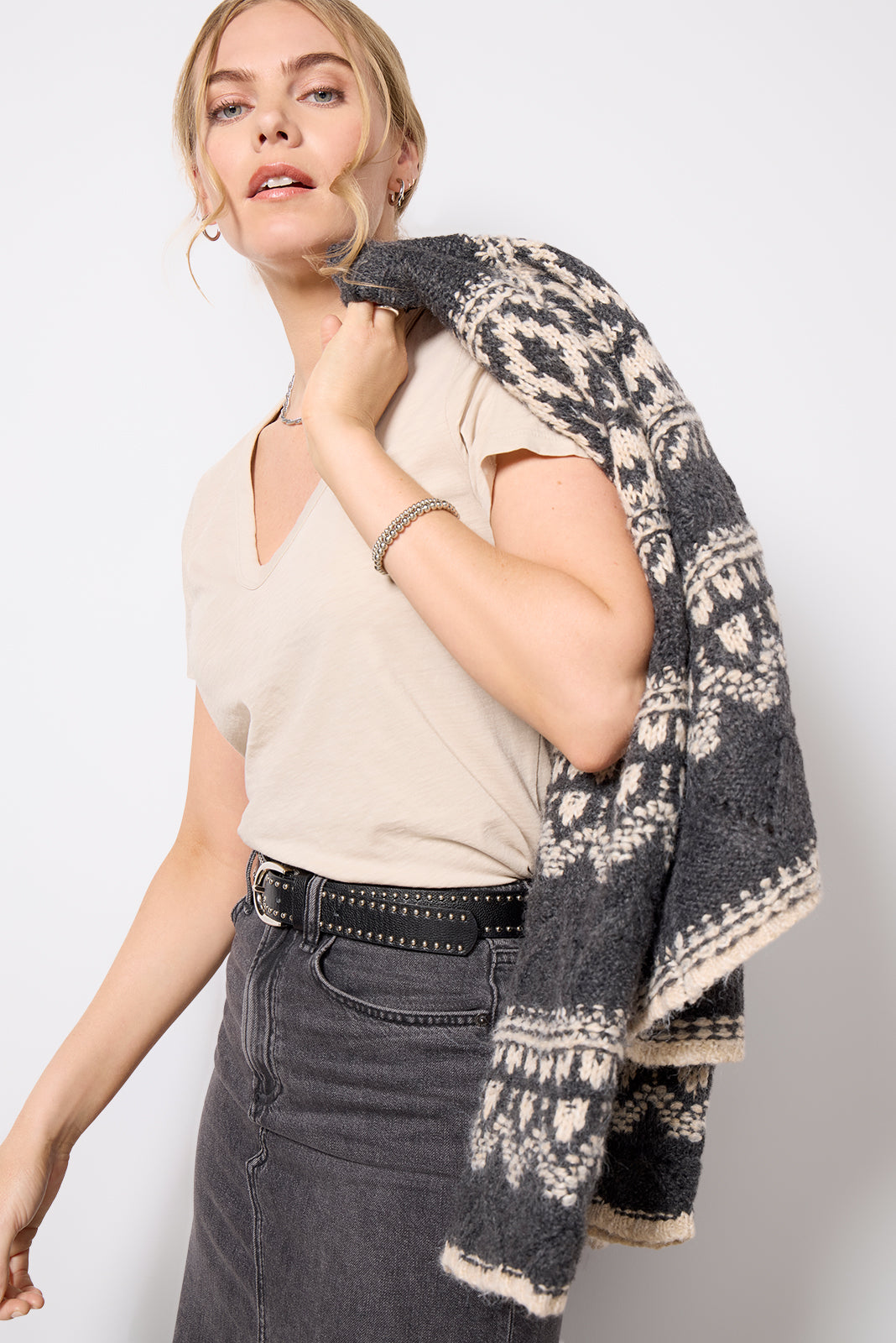 0:00good morning good morning this is going to be a really fun edition of live it is right smack dab in the middle of our0:07denim sale this week it is the perfect time to update that Jean closet you know0:14you need a little refresh why not make it happen now so I'm going to run through some of my absolute favorite0:21trends that we are seeing this season all the way into summer and yes even a0:26little bit into fall and then as always during our sales I'm going to bring out some very special friends who are going0:33to model some of our favorite jeans that are homerun Heroes okay we're going to0:39start with what I'm wearing so did you know that last fall every launched petite denim available only online right0:47now but soon will be coming to a handful of stores this is the perfect solution0:52for those of you who are 54 and under or just have petite legs now one of the0:58things I love about our peti denim assortment is that we are carrying so many Brands including good American now1:07everything you love about good Amer the stretch the fit the Comfort now in a1:13shorter length this is the good americ skate what I love about this is for those of you that are petite that are1:18looking for that wider clean leg but when you try on a regular Jean you're1:24chopping off four five six Ines I've been there I have done it and somehow it1:29just doesn't look quite right the proportions on this are absolutely fabulous this is a great Jean because1:35you can dress it up or make it more casual I'm styling it really simple1:41brand new top from Emerson fry this is such a gorgeous gorgeous top if you're looking for a new night out top I love1:48this you could show a little bit more cleavage if you wanted to open up that little tab just long enough that you1:53don't need to tuck it in but still gives you a great waist and then I'm styling it with that Valerie cow boy style boot2:01absolutely love this shoe because it kind of toes the line between a little bit dressy giving you a little bit of2:08Edge and then yes of course always add a belt okay that is the look that I'm2:14wearing should we dive in to some of my favorite looks and here's the deal gang denim always drives a ton of questions2:22so we are at the ready for all the questions you might have I want to hear what you're thinking I can answer them2:28as I go so don't hesitate to send us those thoughts okay we're going to start with one of my favorite jeans right now2:35and that is because when I think January I think comfy really fun way to update2:41that kind of more comfortable easy on the weekend denim wardrobe is with a2:47cuff now lots of questions about cuffs do I cuff them on my own do they come cuffed in my opinion the easiest way to2:54start out doing a cuff Jean is to buy one that's already pre-cued so two favorites here one from sta one from3:00good American that good American's going to have some great stretch in it little bit more of a tapered leg on this one3:08with about I'm going to give that about a 3 inch cuff here really really washed3:13down and I think actually the destruction on the waistband on this one is so fun to me this just screams3:19weekend run around get it done really easy peasy and that light wash Feels So3:26Fresh okay next option this is from pasta this is a little bit more dramatic3:31and this has been the silhouette I've been leaning into when I've been grabbing a cuff so couple questions about this one I know number one it is a3:38little bit more cropped all the better to show off those fabulous shoes this is also a really great one to style with3:45socks and sneakers yes you can show your socks which right now is very helpful for all of us who are absolutely3:51freezing you'll notice again great light wash on this one this cuff is a little3:56bit more dramatic with that rawam a really fun want to wear now on me 5'44:02short legs this guy really hits just below my ankle for those of you who are4:07blessed with a little bit taller leg you're going to see that this runs a little bit above that ankle and again4:13more of a crop length so shoes with this one I'd wear a great taller booty or I'd4:18wear a sneaker with a sock showing would be so cute okay so we talked cuff let's talk4:25about kind of some more cozy fun options I'm going to start with this fabulous4:31Jean from Paige if you happen to catch my reel last week when I was styling4:37different denim this is one of my absolute favorites I love this guy because it's kind of barrel is I know4:46that for some of you you're still a little hesitant on that Barrel shape and here's how I want to reframe it for you4:51think about this being more of a boyfriend fit what's great about this from page is that seaming in the back4:57which is so flattering it's really help helps to nip in the waist has almost a trouser feel on top and then you can5:05either cuff it and roll it like we did here or you can leave it down now couple5:10things I think are really important about this kind of barrel or barreless shape is length when these get long they5:17get kind of dowy looking so I really suggest making sure you get that height5:22a little bit higher on this one especially with that tapered leg show5:28off that shoe show off that sock this is a great one again to knock around on the weekend or if you want to dress it up a5:35really fun one to pair with a little bit more of a heel tuck in your top add a belt you're good to5:42go you guys are quiet today usually so many questions when we're running through denim okay another really fun5:50look that I'm loving very similar to what I'm wearing now is that wide leg and how do you update that wide leg5:56silhouette we've been talking about it for a while now it really is starting to feel like a staple in the closet but6:02there's lots of fun ways to refresh it starting with this great Jean from cut now we had this last year sold out in a6:09hot flash so you catch that uhhuh oh yeah that's happening okay so we've got6:14t