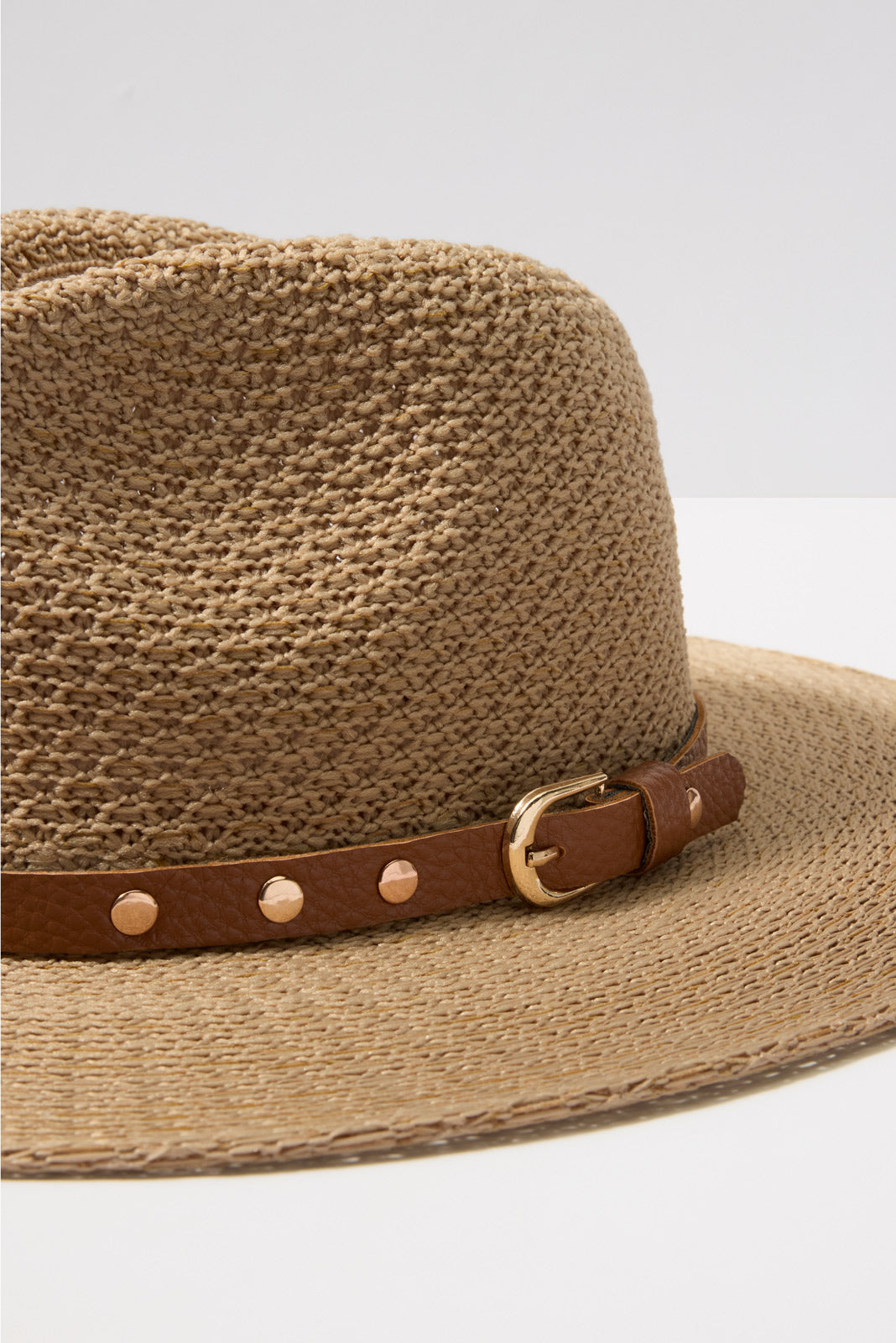 Polish off your warm-weather look with the Adrian Packable Sunhat by EVEREVE, featuring a breathable woven fabric and decorative studded belt strap.