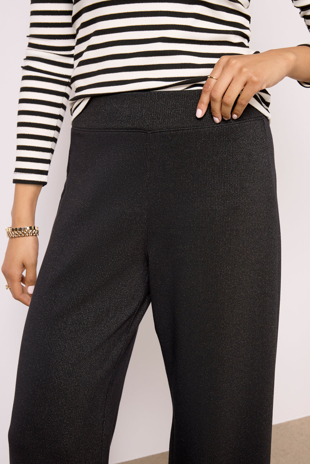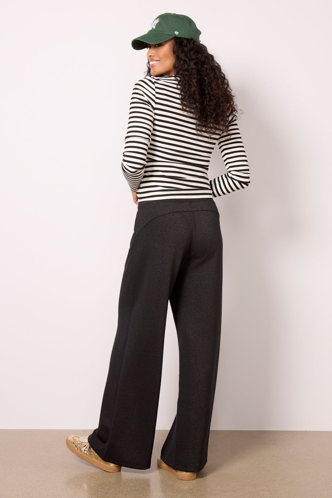 Add a little shine to your weekend wardrobe with the AirEssentials Shimmer pants from Spanx, featuring a high-rise waist, a full-length inseam, and a wide-leg silhouette.