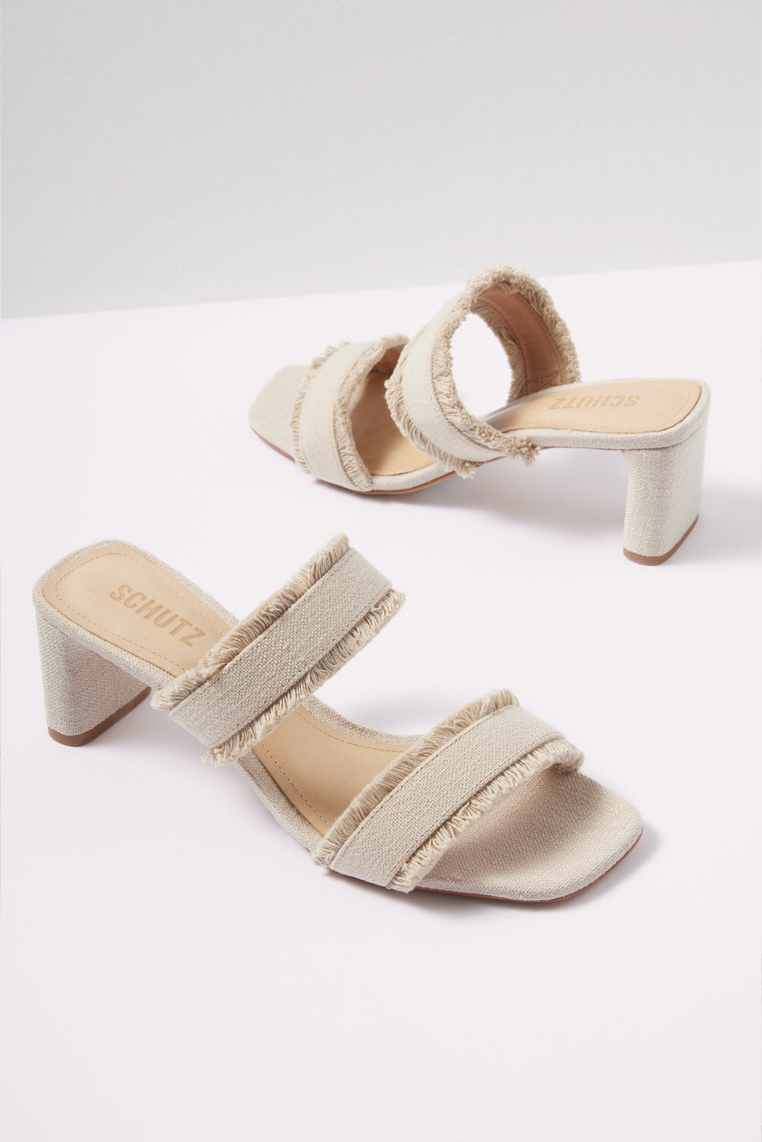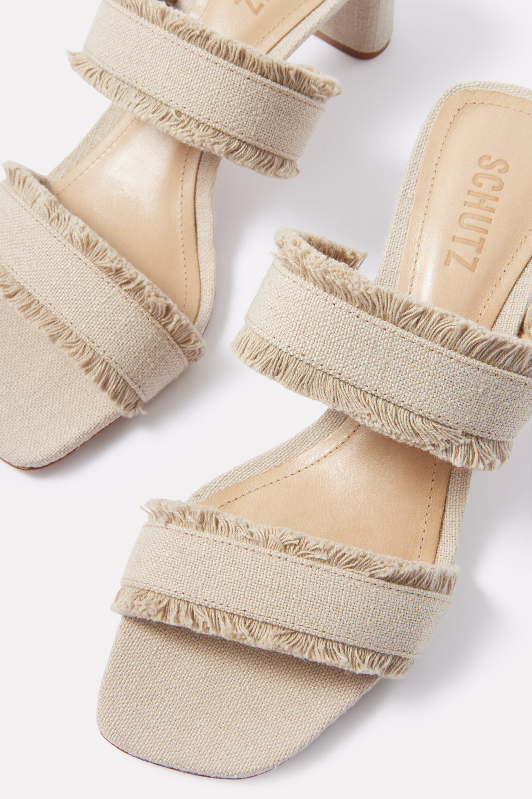 Perfect with all your summer looks, the Amely sandal by Schutz is lifted on a slim block heel and features a two-strap design with fringe trim. You'll love them with your favorite denim, dresses, and skirts.