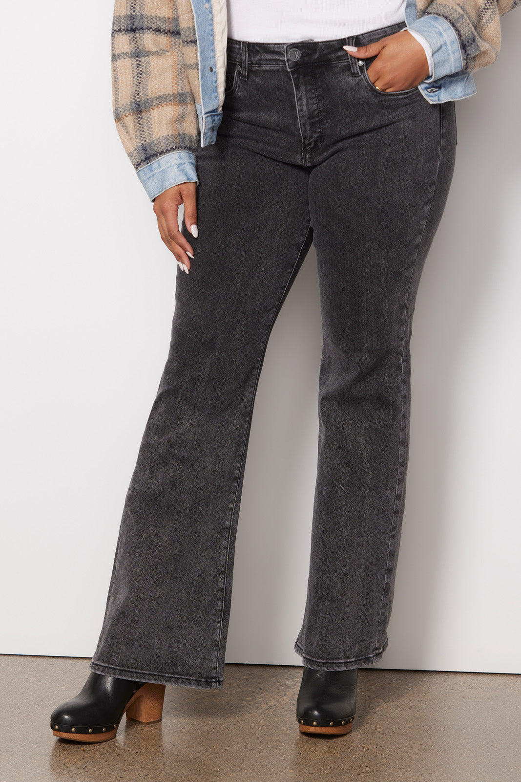 Amp up your denim collection with these flattering flared jeans by Kut From The Kloth featuring a high-rise fit and comfort-stretch denim fabric. The full-length leg pairs perfectly with booties or heels, while the faded black wash makes them the perfect day-to-night staple.