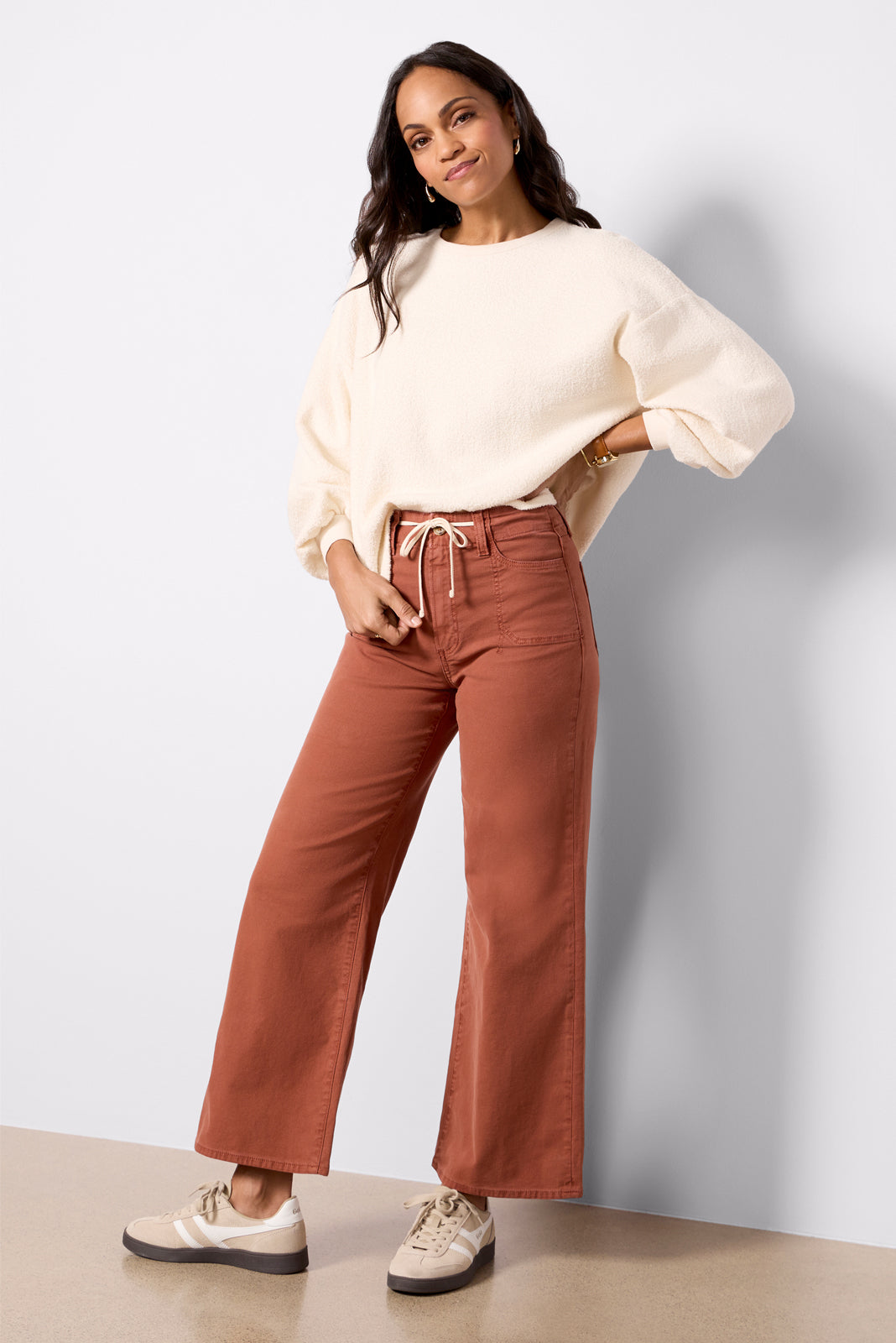Crafted in soft twill fabric, these stylish wide leg pants by Paige will instantly elevate your wardrobe, featuring a full-length inseam, patch pockets, and a high-rise waist with an adjustable tie.