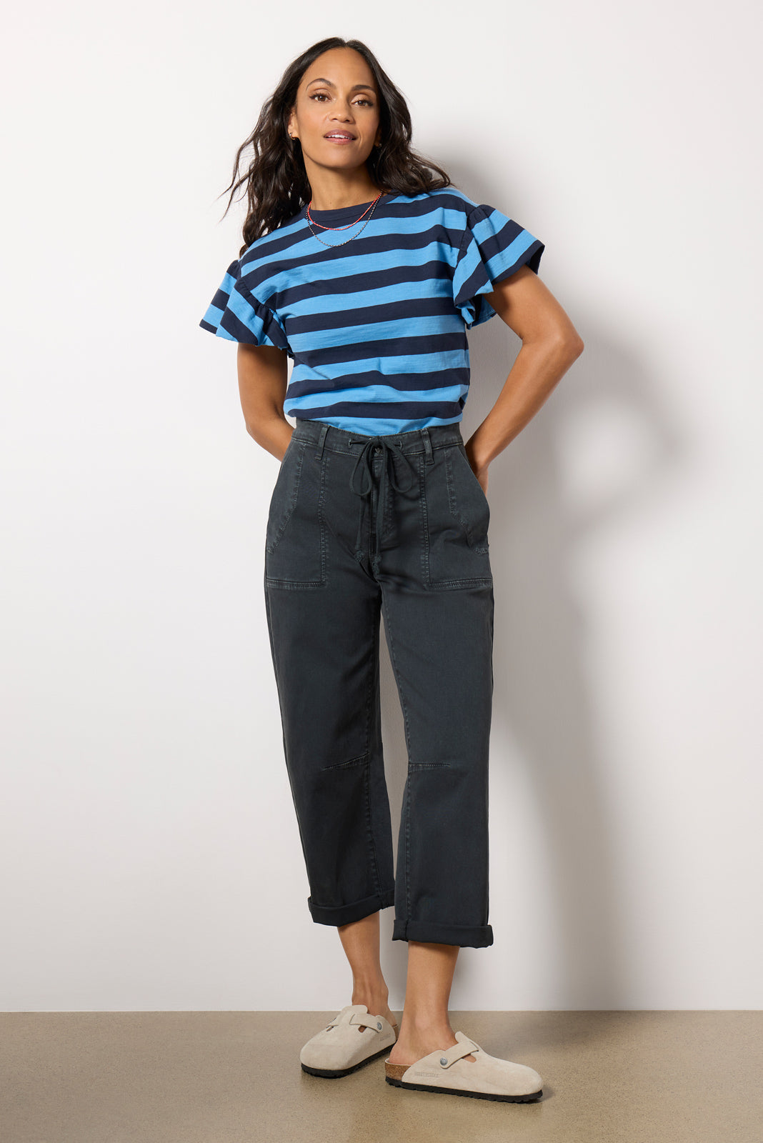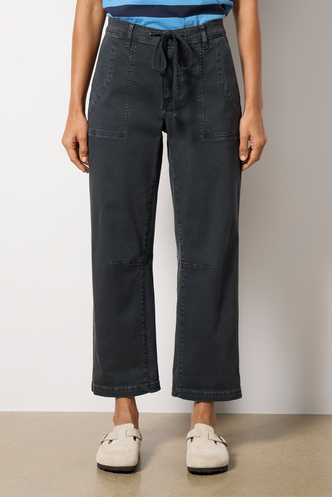 Add a touch of utility-inspired style to your wardrobe with the Ashton barrel leg pant by KUT from the Kloth. Finished with an adjustable tie waist, these high-rise pants feature a relaxed fit, cropped hems, and utility pockets at the front and back.