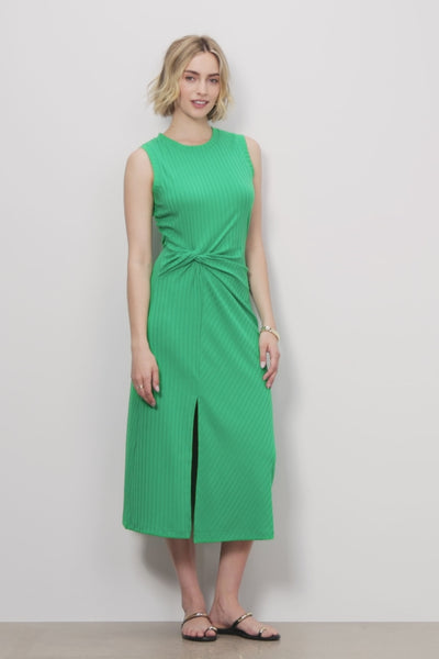 A twist-front detail adds a flattering touch to this versatile midi dress by EVEREVE. Finished in soft ribbed fabric, the Avery Dress features a sleeveless silhouette with a crew neckline, contrast trim, and a side slit for added movement—perfect for wearing day or night.