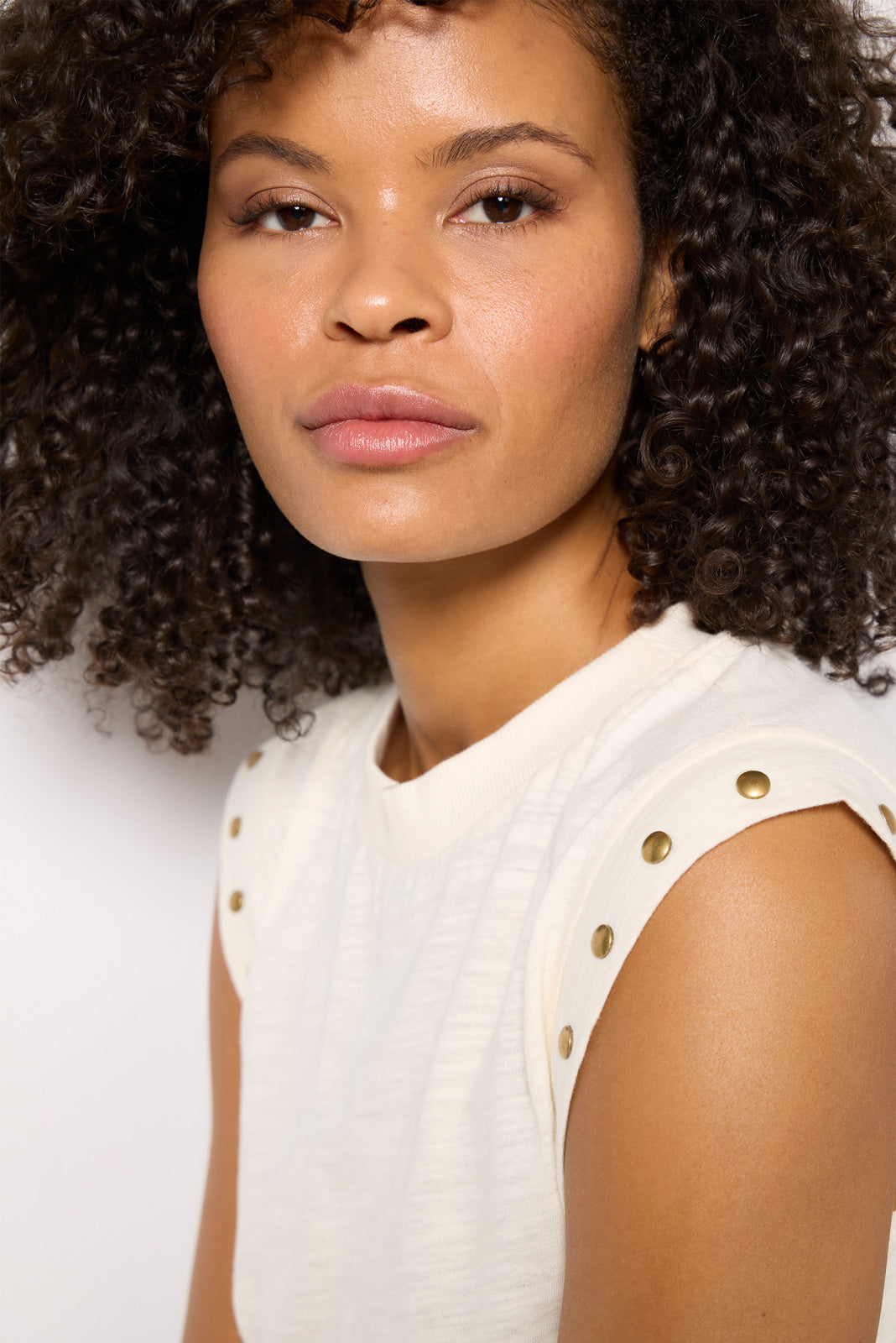 Crafted in a lightweight cotton, the Brinley Tee by EVEREVE features a crew neckline, studded sleeve details, and bra-friendly gussets at the armhole.