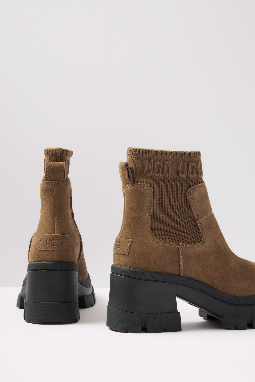 Take on the season in style with the UGG® Brooklyn Chelsea. These pull-on boots are crafted in water-resistant suede and feature a lightweight, chunky heel and elastic knit gore for easy on-and-off.