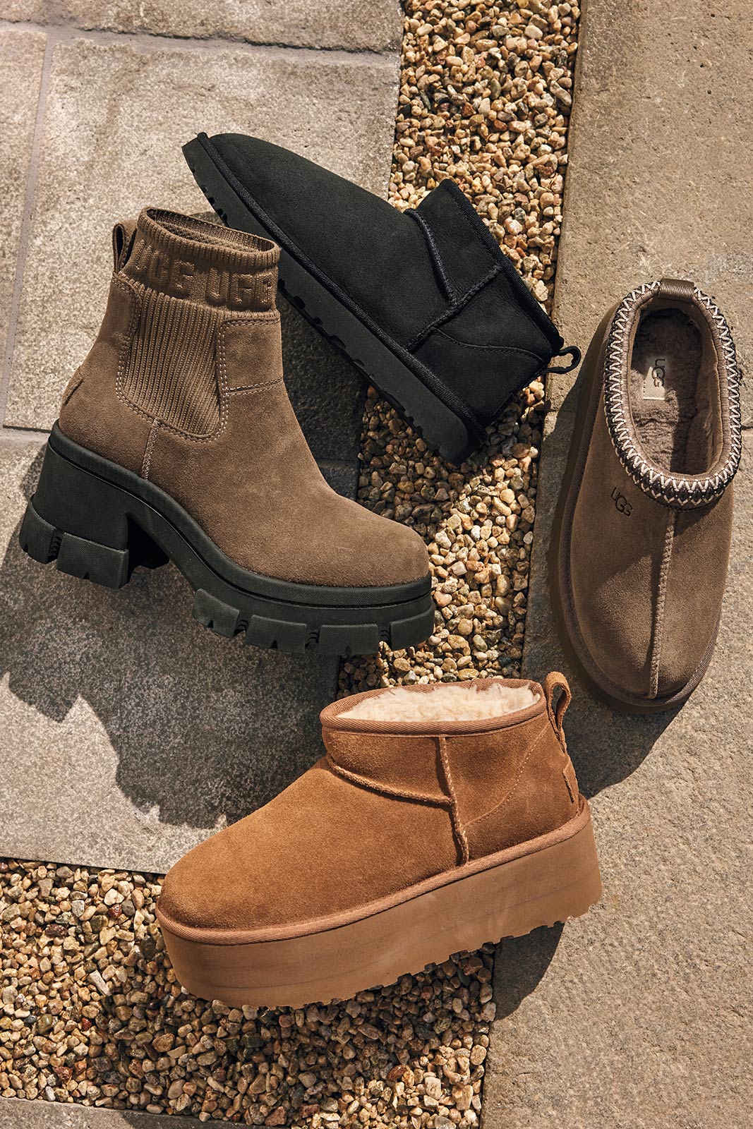 In 1978, an Australian surfer brought his beloved sheepskin boots to Southern California and founded UGG®. By the mid-1980s, the brand had become a mainstay in surf shops up and down the coast and an icon of the beach lifestyle. Now loved everywhere by people who appreciate comfy style, UGG® offers casual footwear and cozy items for the home, along with its signature boots.