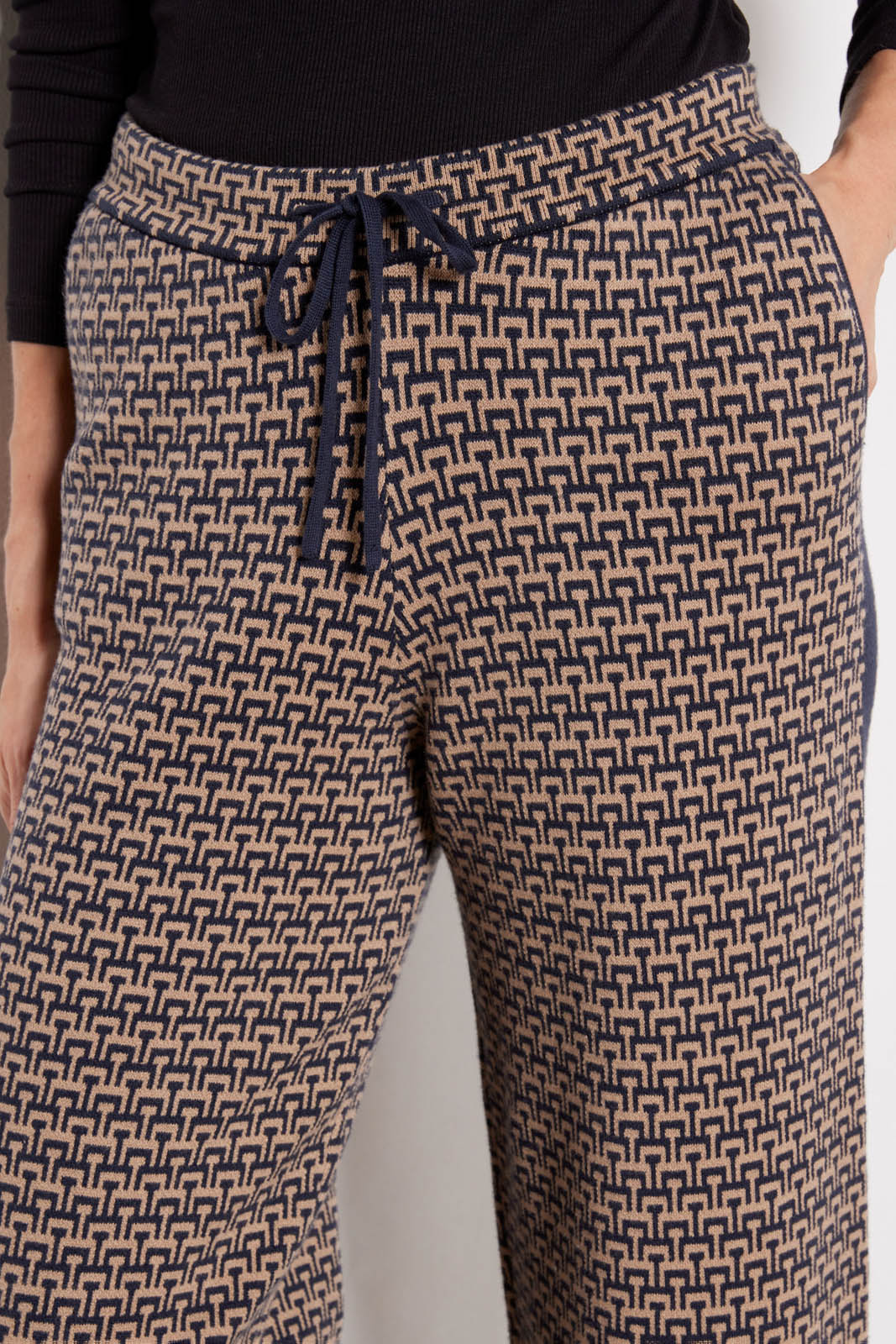 Take your weekend wardrobe up a notch with these wide leg pants by The Upside. Crafted in a soft sweater knit, these patterned pants feature a pull-on silhouette with a relaxed fit, side pockets, and a high-rise drawstring waist. Add sneakers or slip-ons for a chic, laidback look.