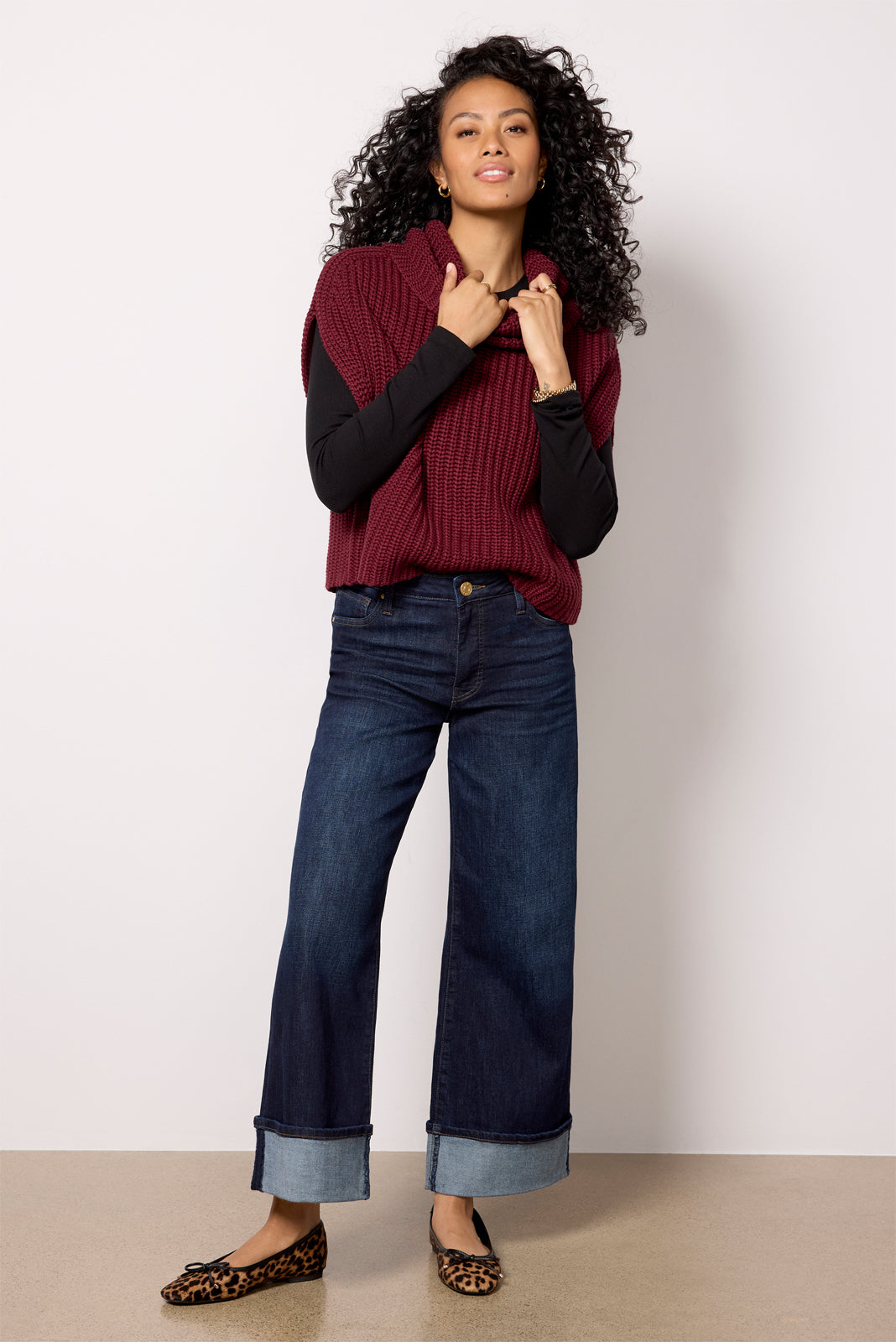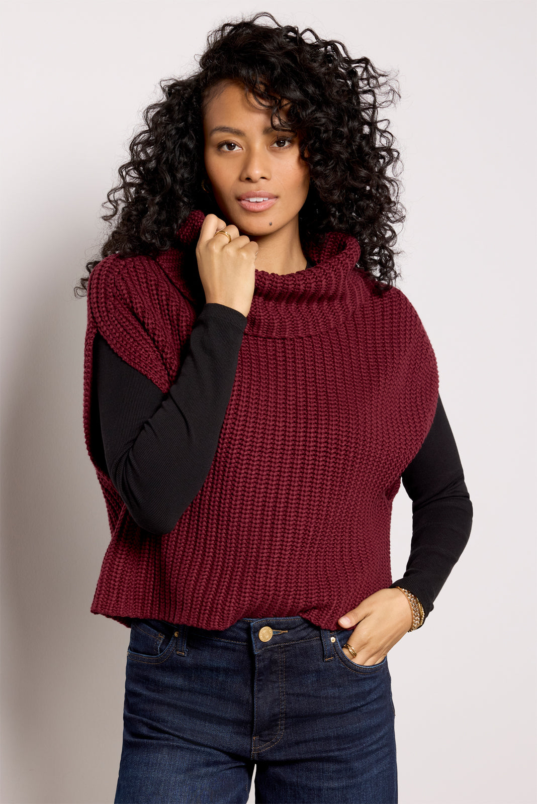 Transition into fall style effortlessly with the Cate Vest from 525, featuring a beautifully draped cowl neck, cap sleeves, and knit in comfortable cotton. Pair it with denim, skirts, cargo pants, and more.