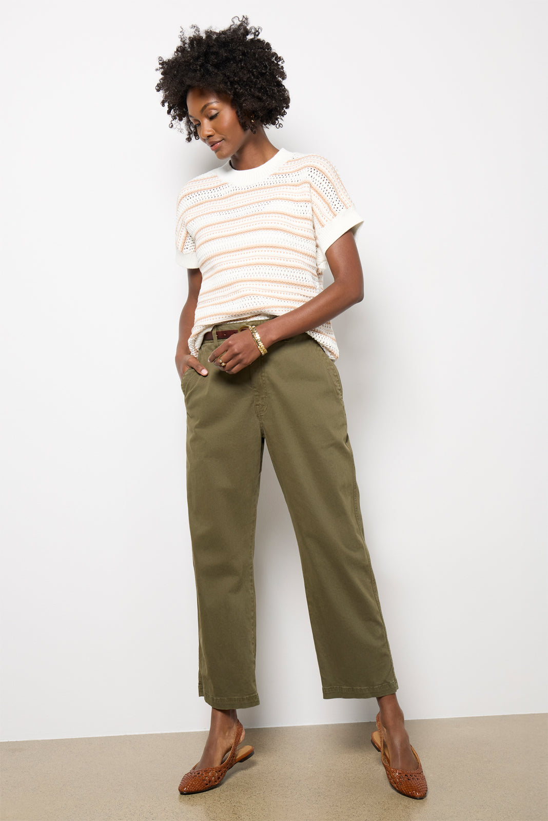 Upgrade your weekend runaround look with the Ciara Stripe Knit Top by Varley, featuring a crew neckline, dropped shoulders, and a mix of pointelle and stripe stitching.