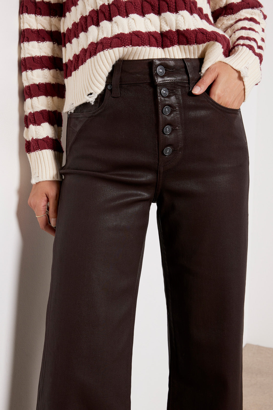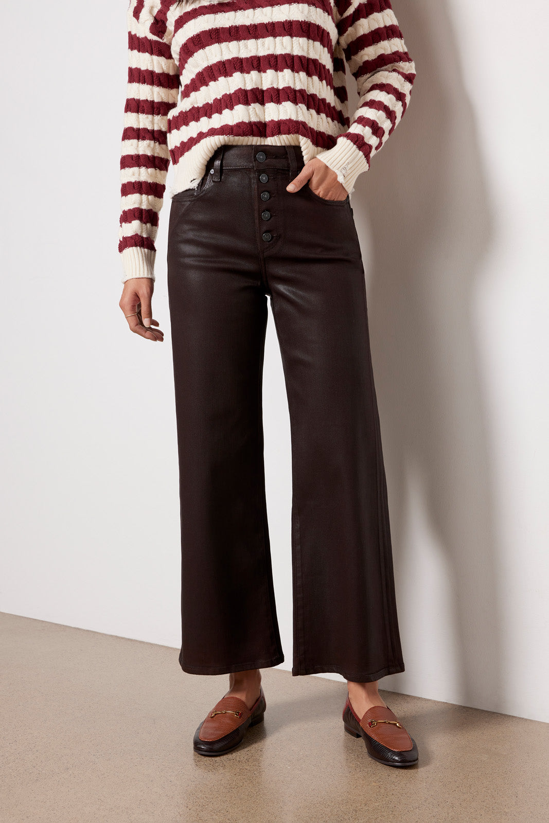 Amp up your winter wardrobe with this wide leg silhouette by Paige. Crafted in luxe coated denim with an exposed button fly, the Anessa features a flattering high-rise fit, classic 5-pocket styling, and ankle-length hemsperfect for day-to-night wear.