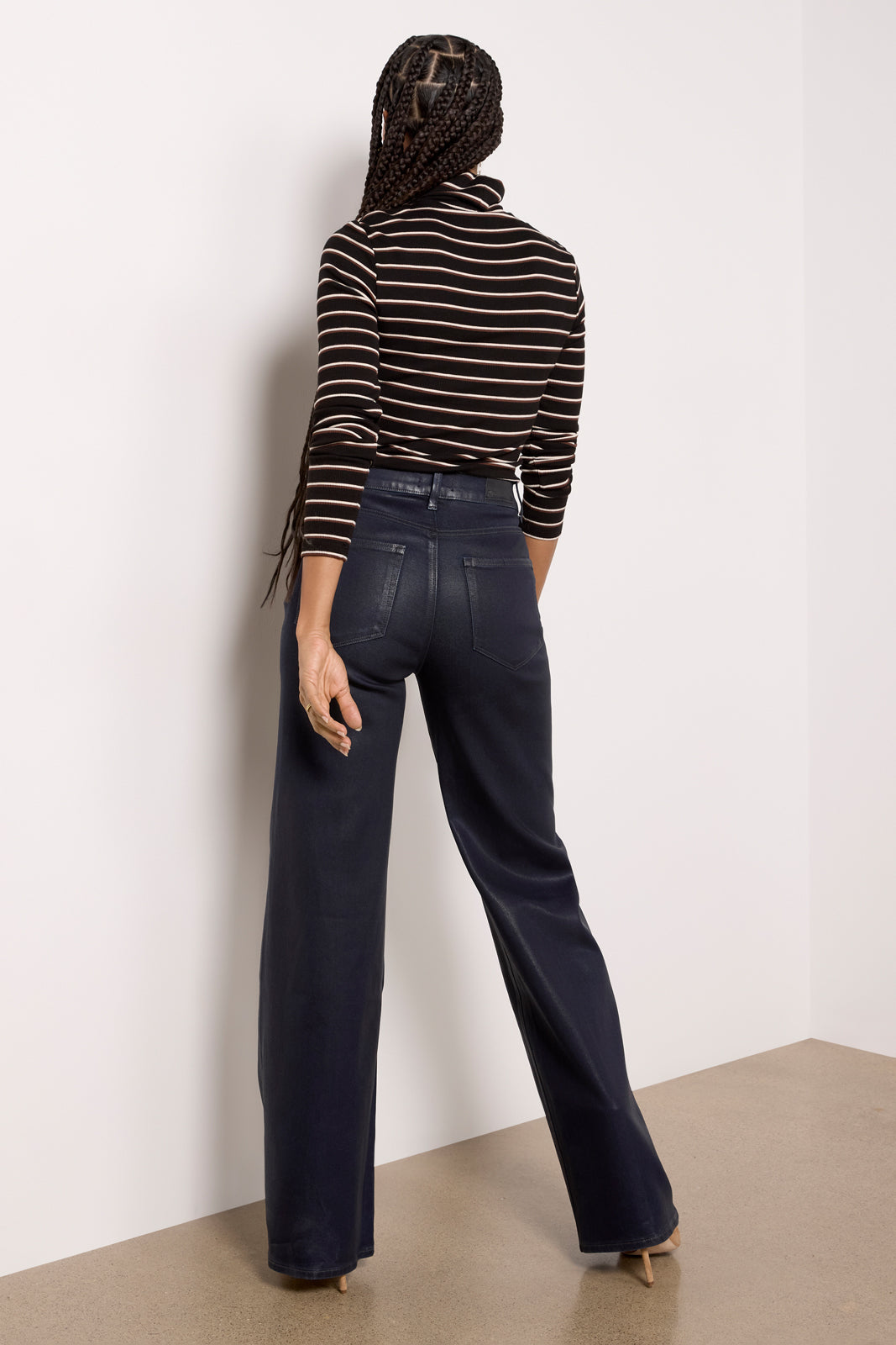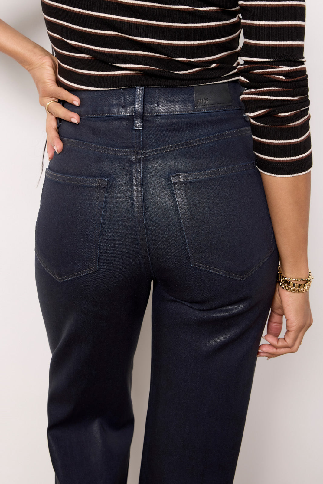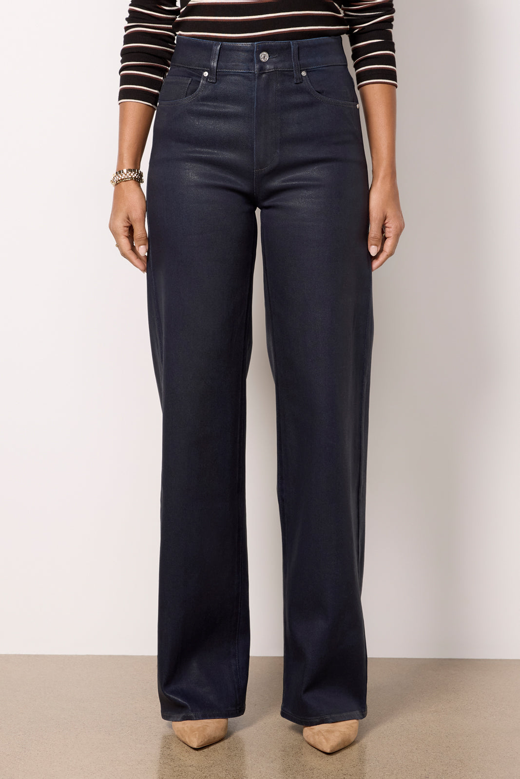 Sleek coated denim gives a luxe look to these wide leg jeans by Paige, featuring a high-rise waist and full-length hems. Style for the season with a blouse or cozy knit sweater.