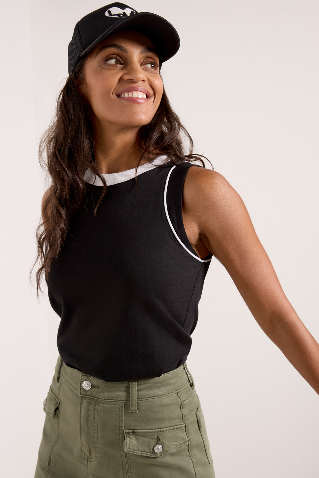 Crafted in soft Pima cotton, the Cooper Piped Tank will be your new summer go-to, featuring a contrast crew neckline, delicate piping details, and a relaxed silhouette. You'll love it paired with utility skirts, denim shorts, and more.
