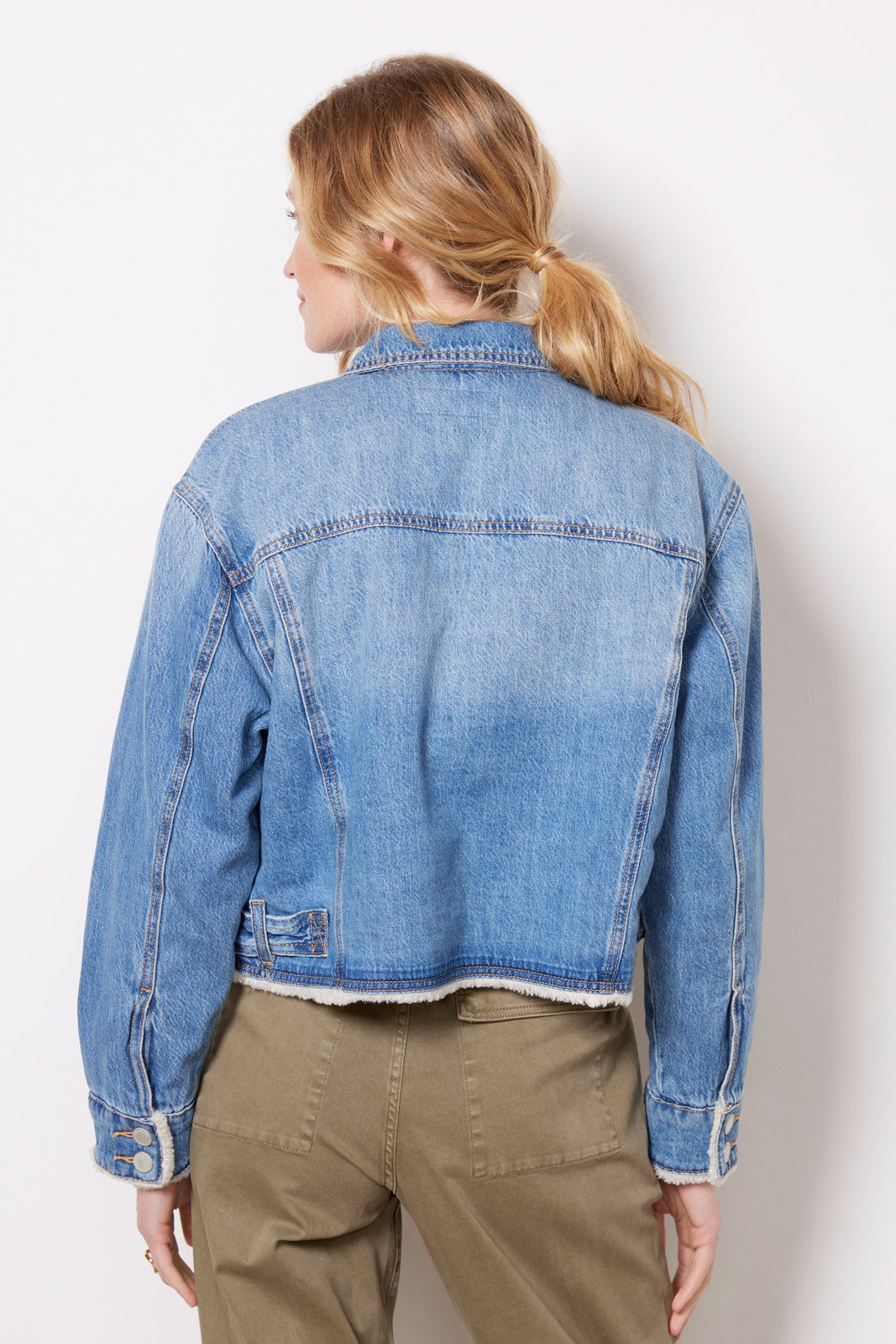 - Material: 100% Cotton Denim; Lining: 100% Polyester Faux Fur