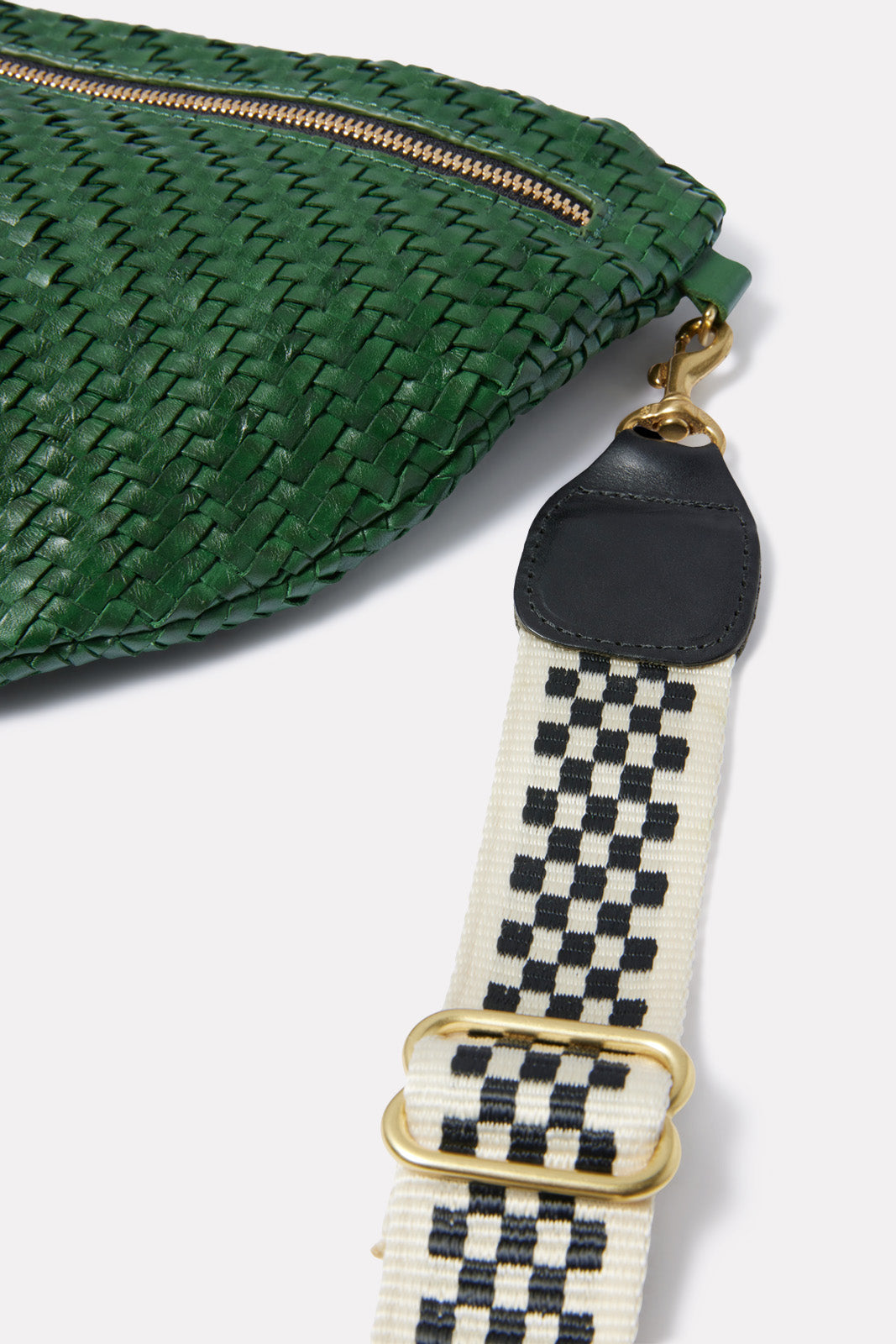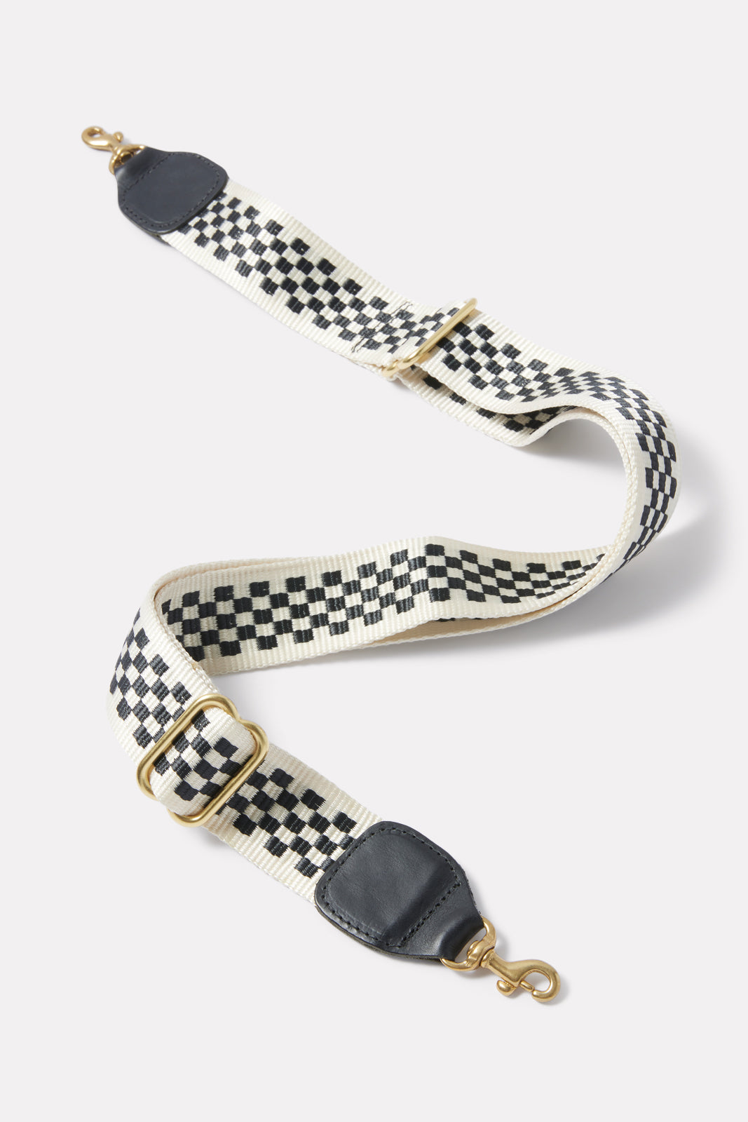 Customize your favorite bag with this stylish crossbody strap by Clare V. Made in L.A., this adjustable, detachable strap features a checkered design, leather tabs, and gold-tone clip hardware to attach to any bag.