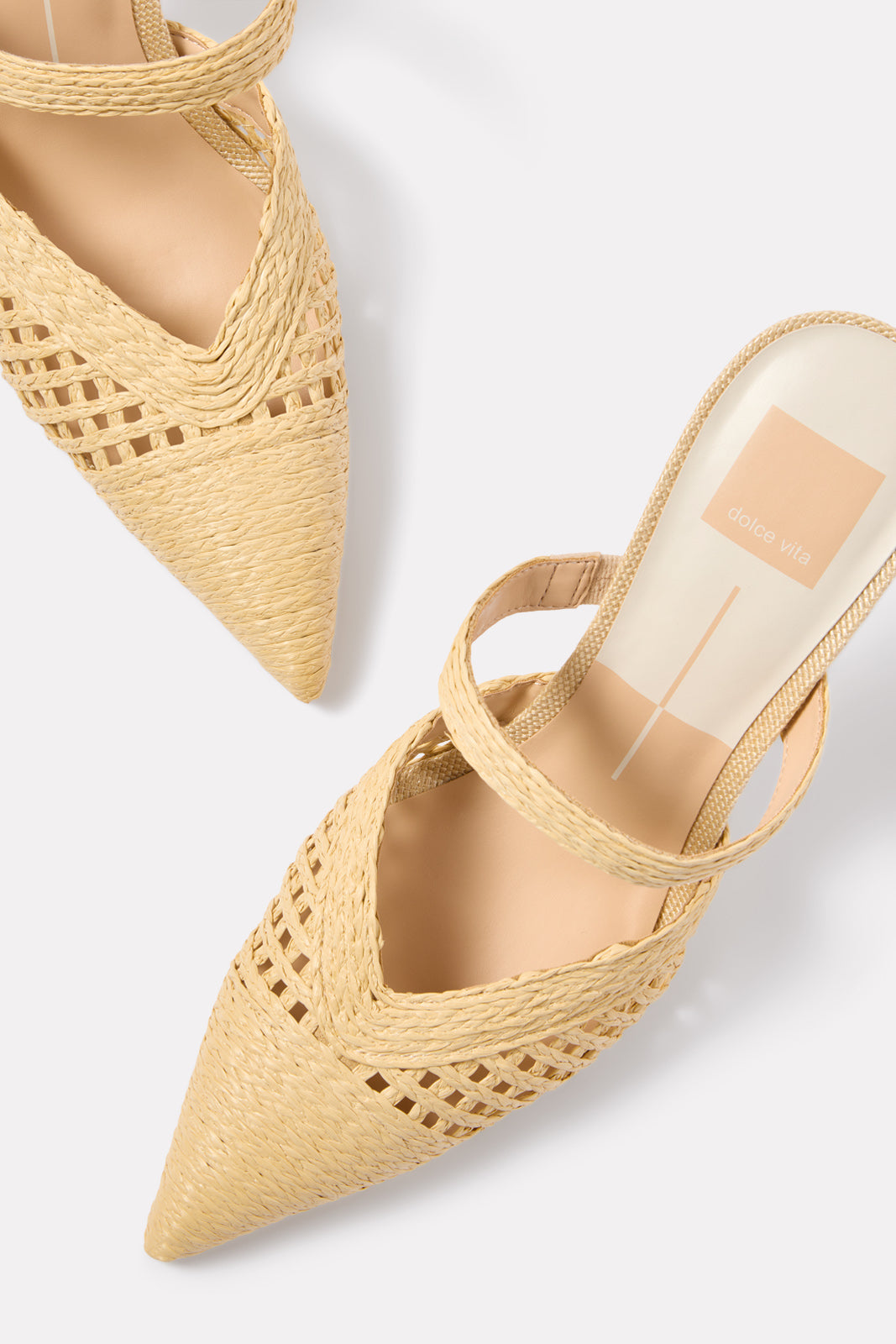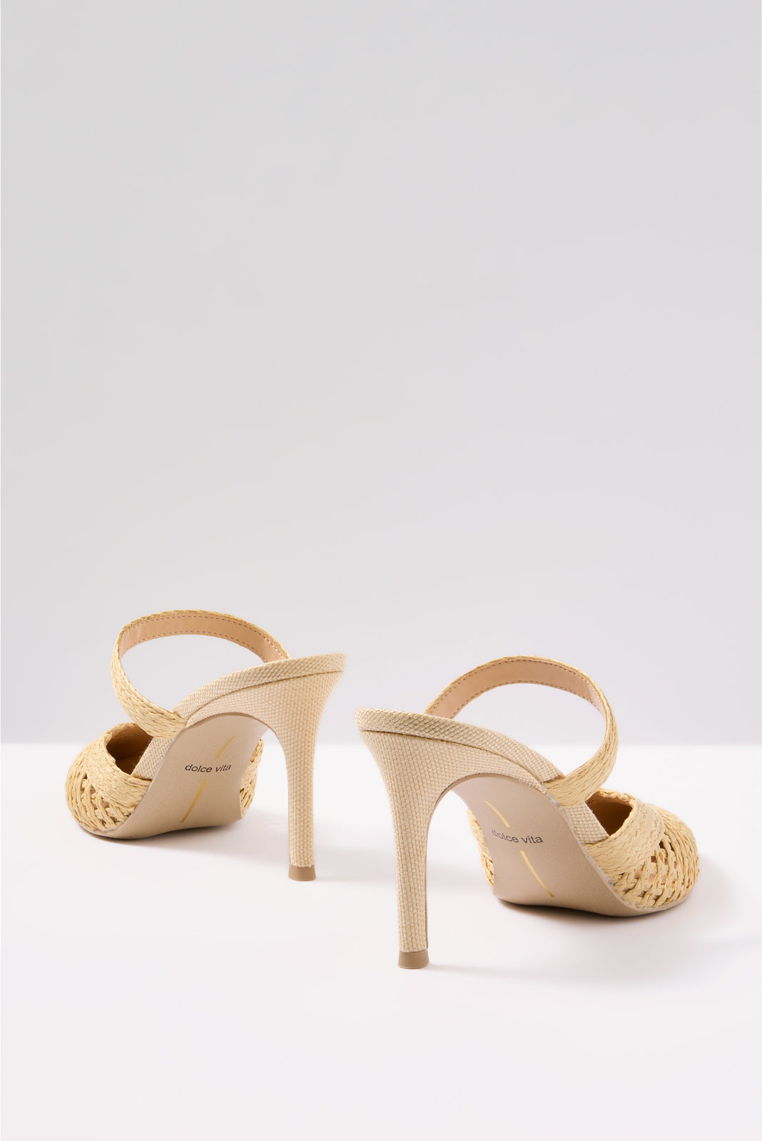 Elevate any summer occasion with these chic slip-on sandals by Dolce Vita, crafted in textured raffia with a pointed toe and stiletto heel. Pair them with a dress, jumpsuit, or flowy wide leg pants.