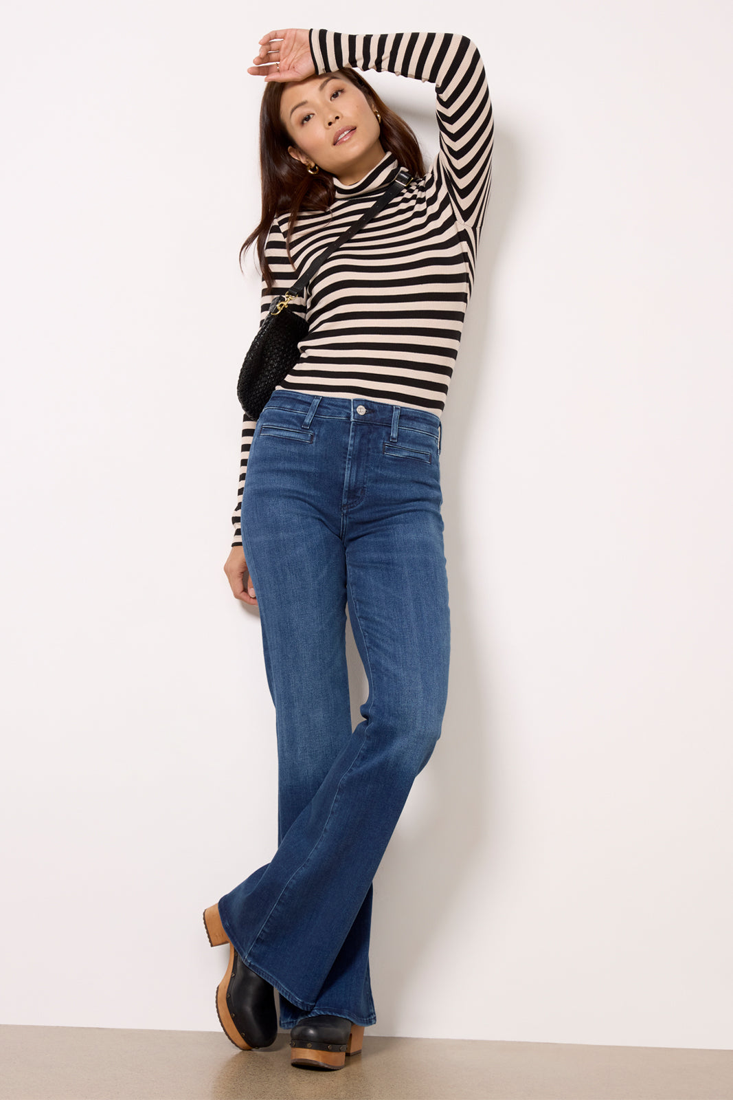 A must-have wardrobe essential, this striped turtleneck tee by Sanctuary is crafted in soft rib knit fabric and features a fitted silhouette with long sleeves. It's perfect for layering or wearing alone.