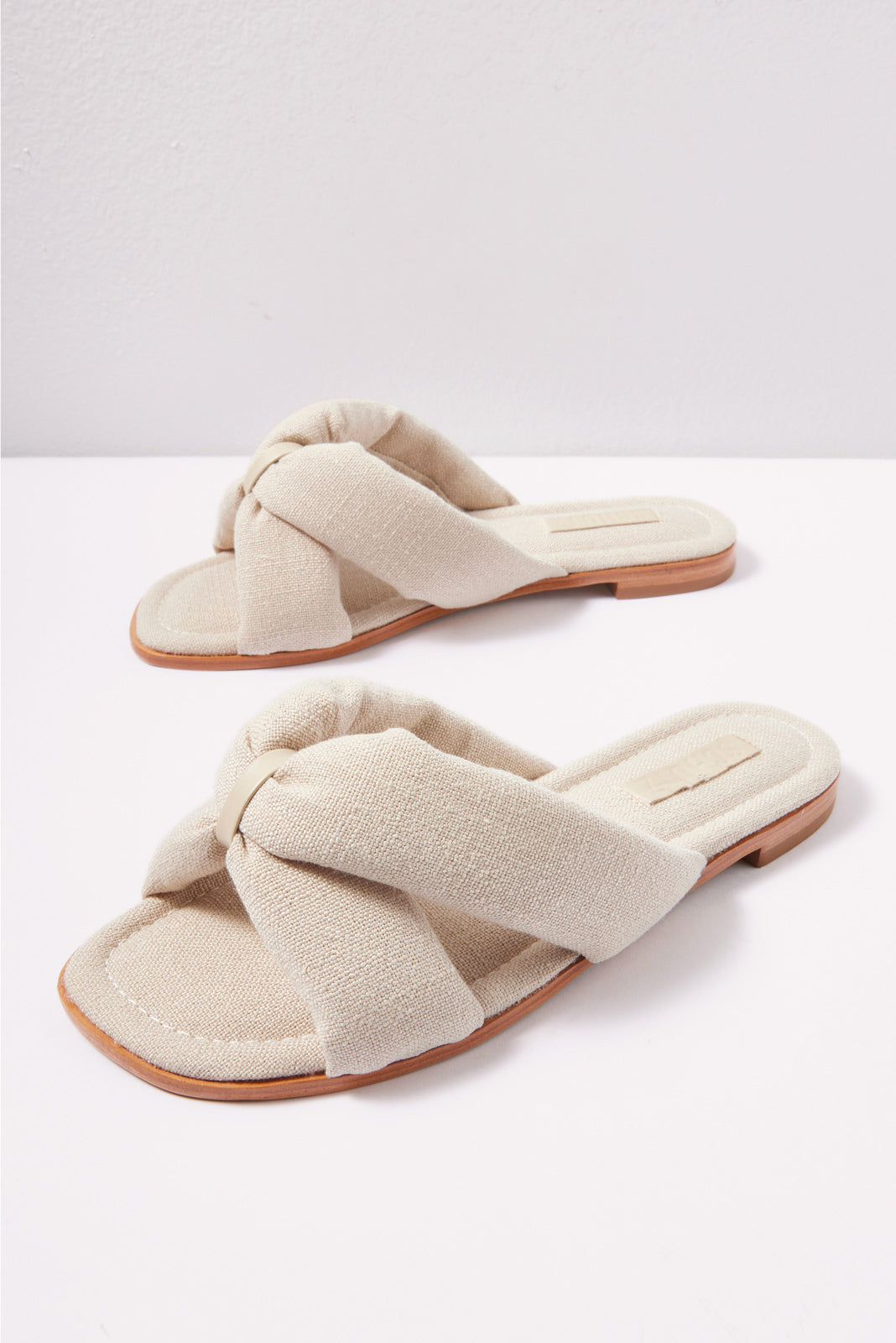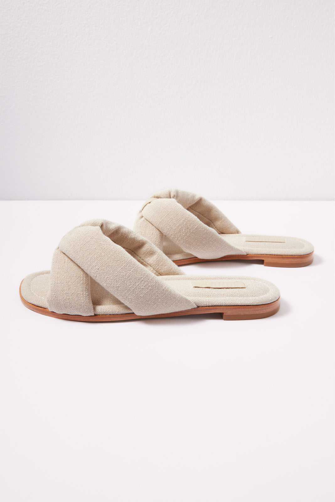 You'll be wearing the Fairy Slide by Schutz all season long. These versatile sandals feature a slip-on design with puffy straps and woven linen fabricperfect for pairing with any warm-weather look.