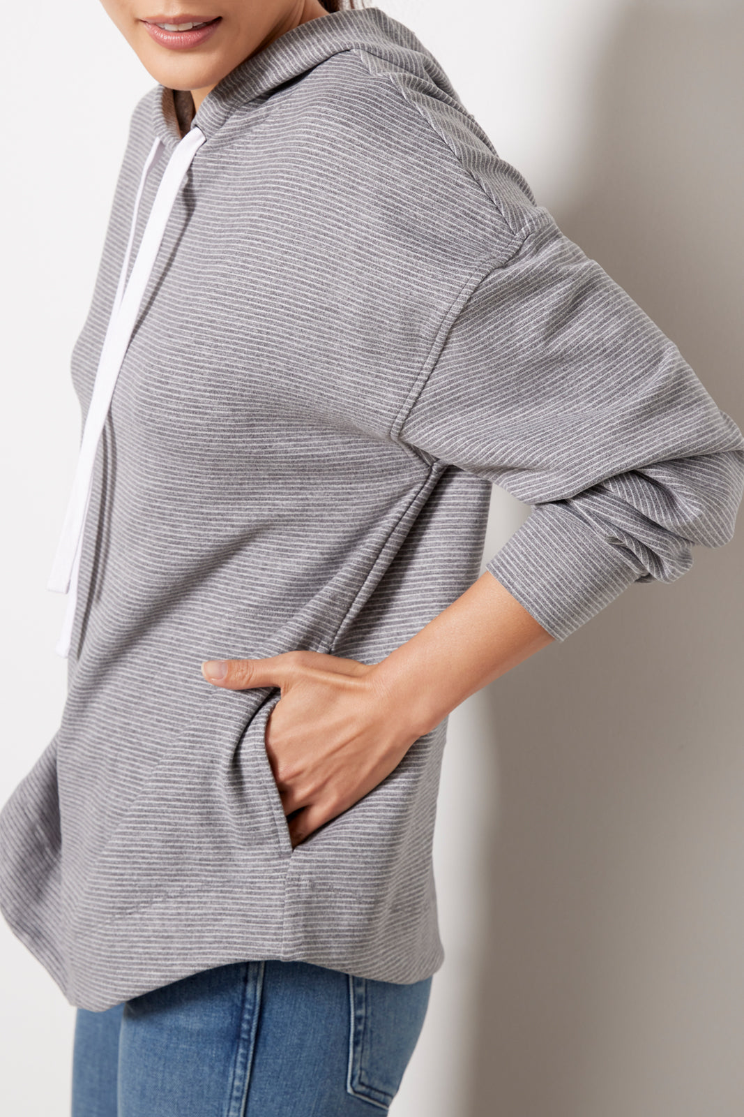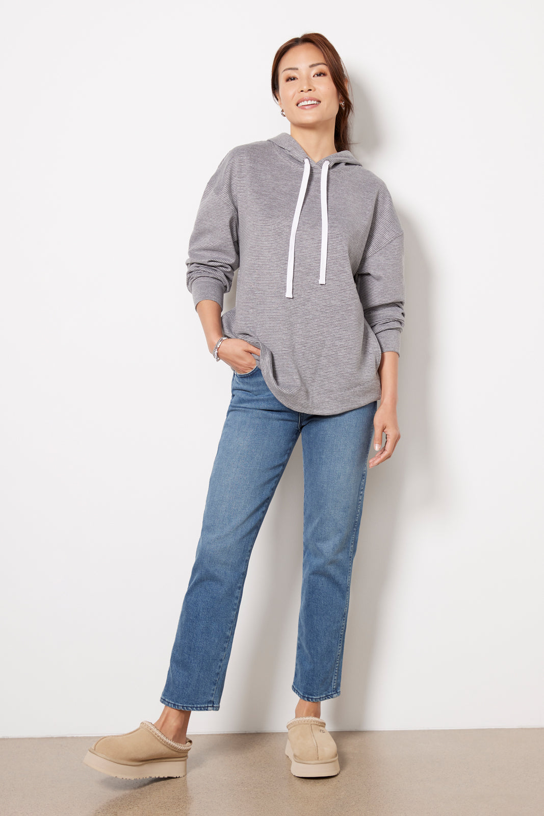 Stay cozy in this stripe brushed hoodie from EVEREVE. This sweatshirt features a relaxed fit, drawstring adjustable hood, and two front side seam pockets.