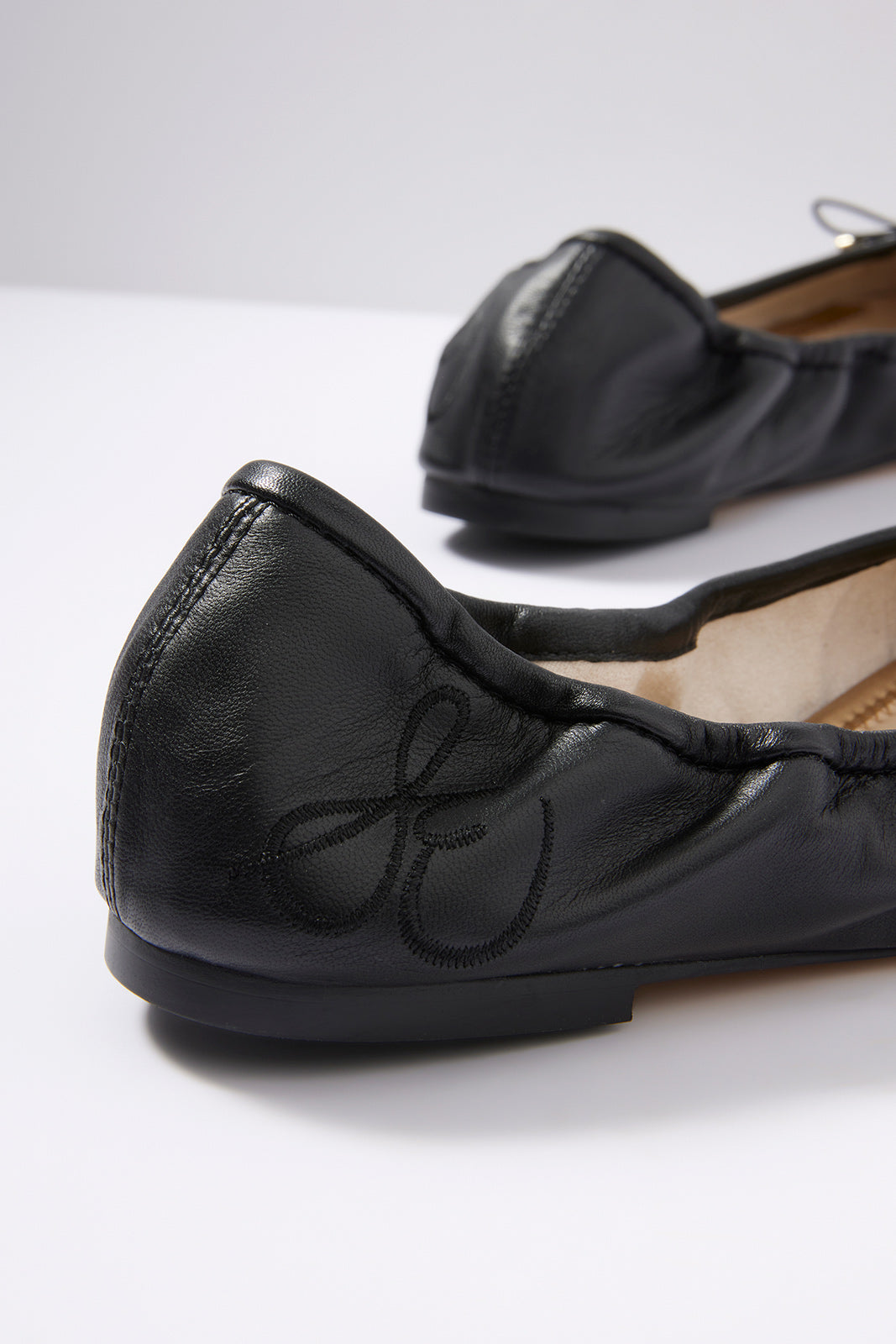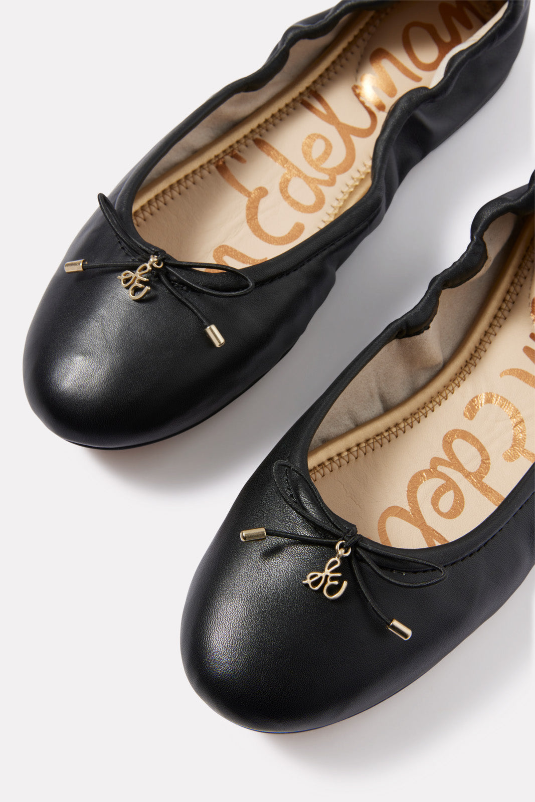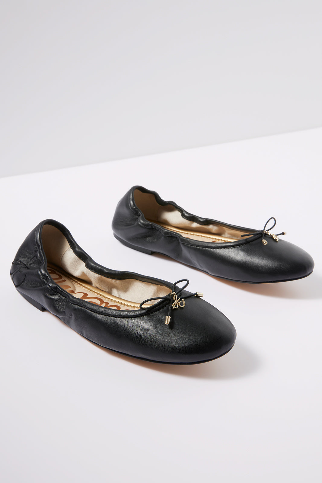 Round out your footwear collection with these chic ballet flats by Sam Edelman, finished with a round toe, bow detail, and flexible elastic for the perfect fit.