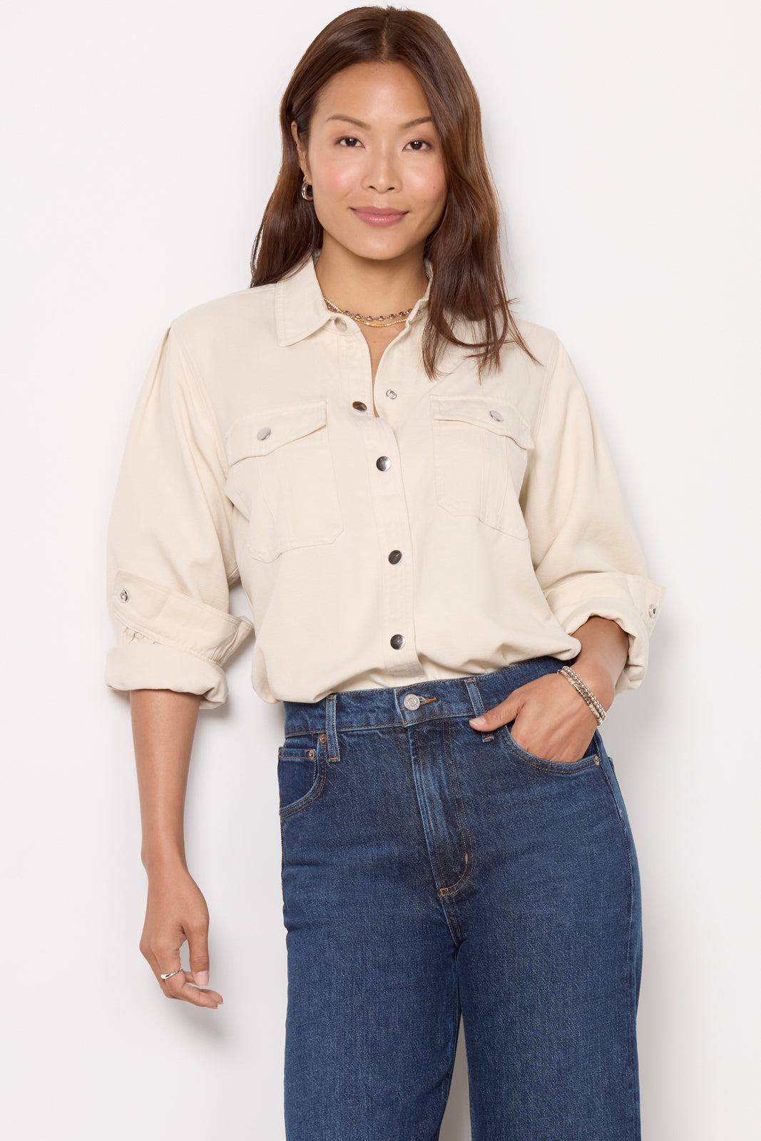 Elevate your look with the Fern Top by Rails, crafted in a cotton-Tencel blend with a snap front closure, curved hem, and chest pockets. Style for fall with your favorite jeans or cargo pants.