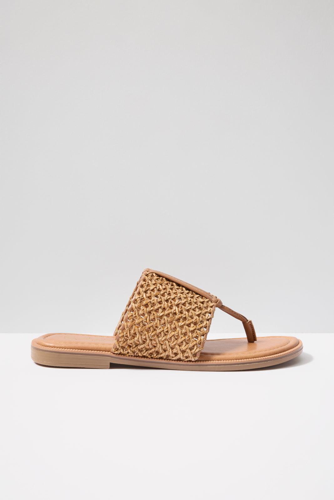 A wide woven band adds summery texture to these slide sandals by Seychelles, featuring a thong-style design and round toe.