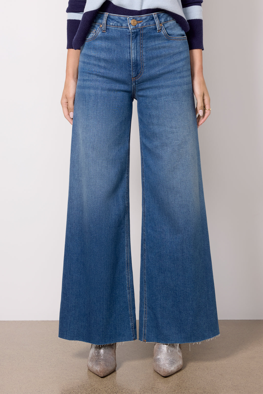 A flared wide leg defines these fun and flattering jeans by Kut From The Kloth, featuring a high-rise waist, raw hems, and soft stretch denim fabric.