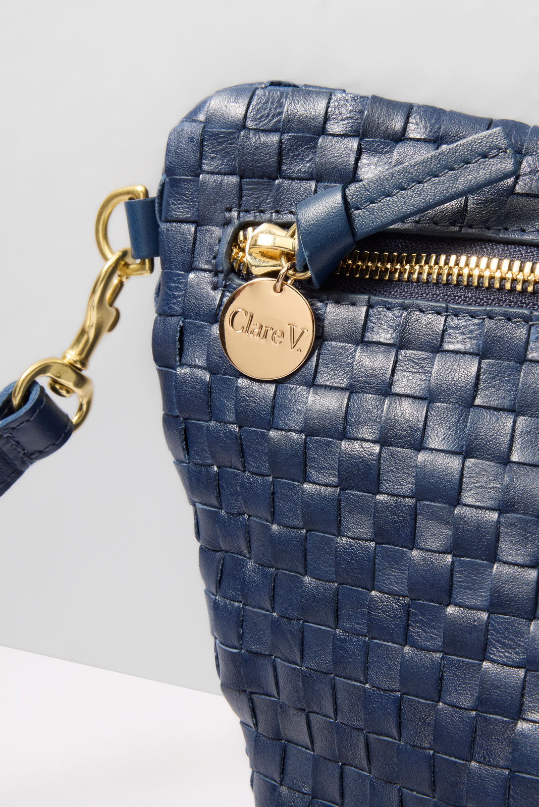 Chic and versatile, this Clare V. bag is the perfect on-the-go essential. The Grande Fanny is crafted in woven Italian leather with a chambray-lined interior and zipper closure. The detachable, adjustable strap can be worn at the waist, across the body, or on the shoulder.