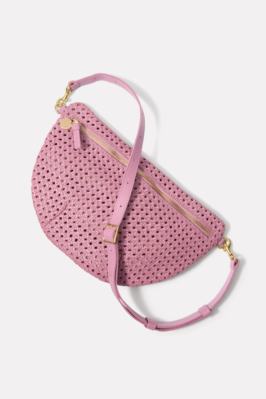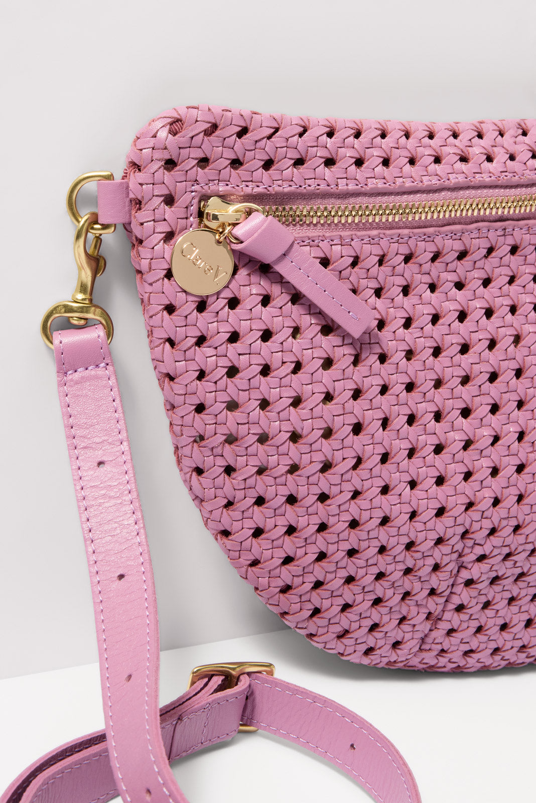 Chic and versatile, this Clare V. bag is the perfect on-the-go essential. The Grande Fanny is crafted from woven leather in a rattan pattern with an unlined interior and zipper closure. The detachable, adjustable strap can be worn at the waist, across the body, or on the shoulder.