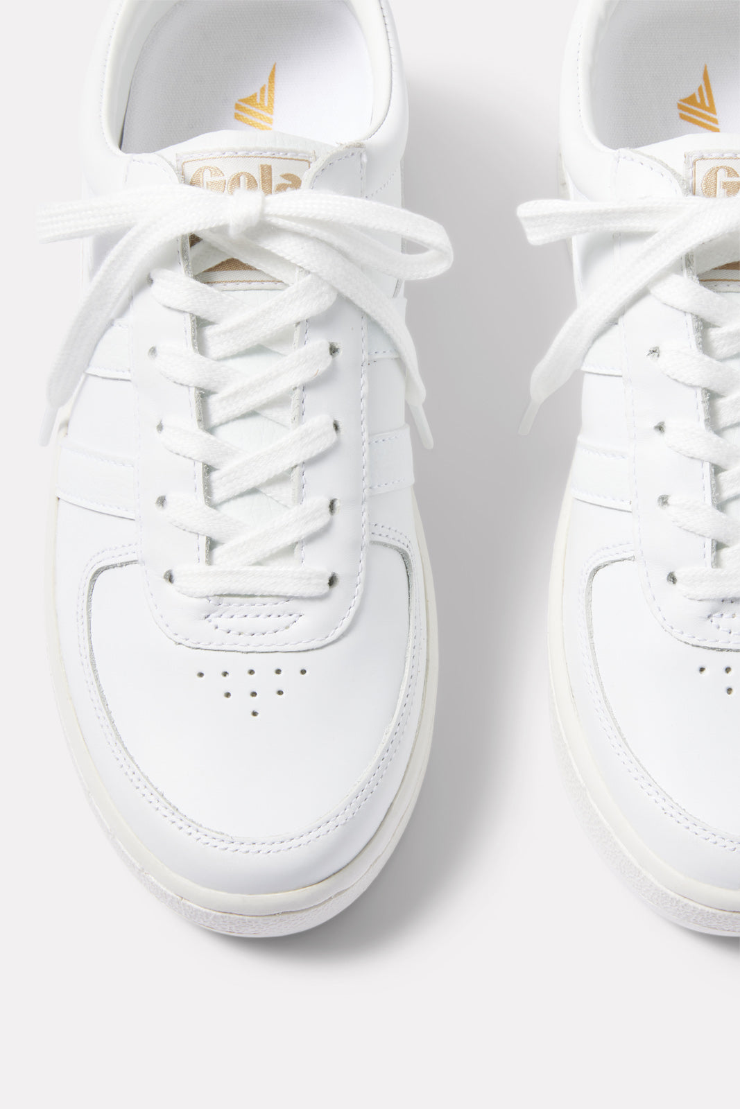 Hit your stride in these stylish Gola sneakers, finished in bright white leather with a platform sole and lace-up closure. Pair these sporty-chic low-tops with everything from denim and wide leg pants to a flowy dress.