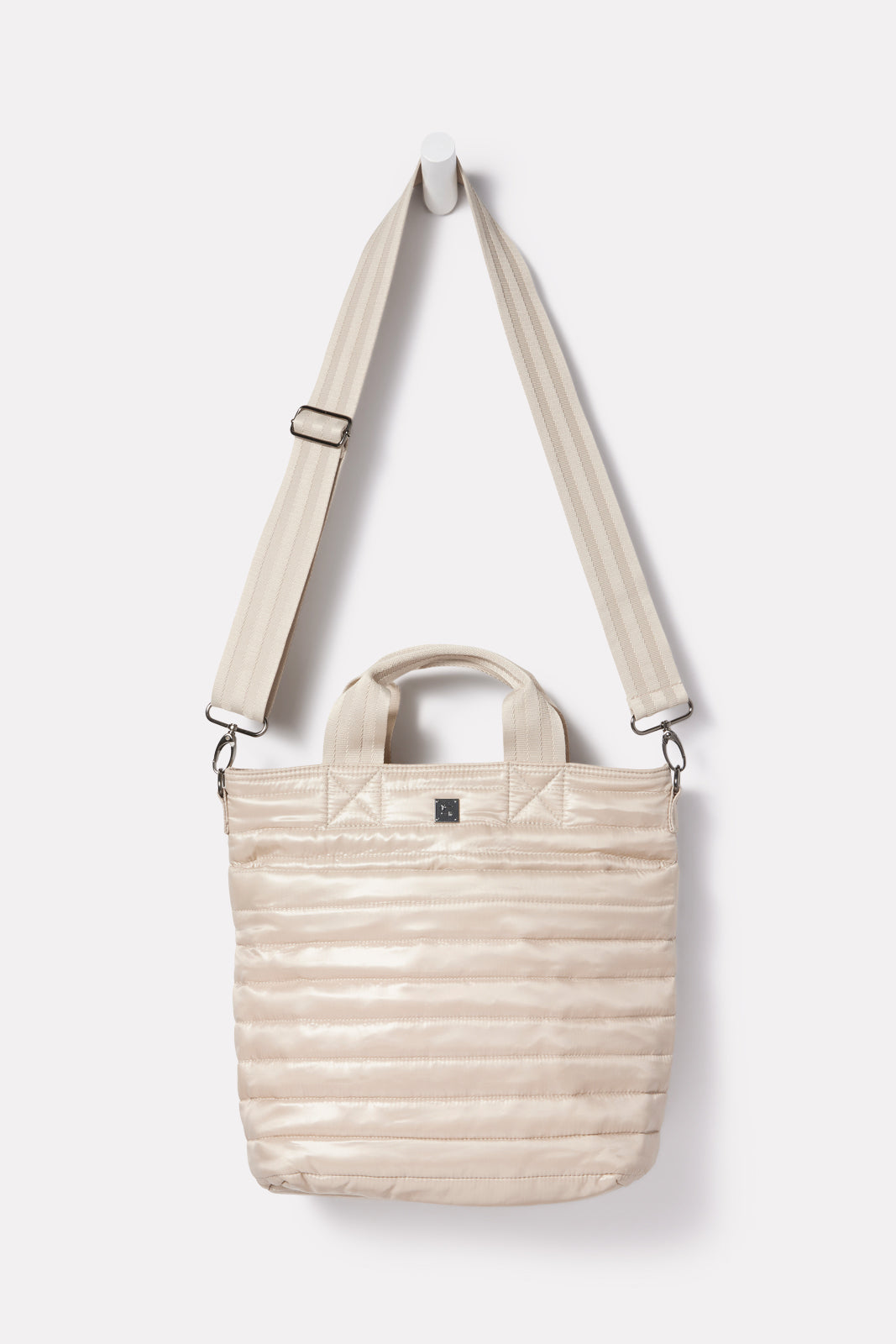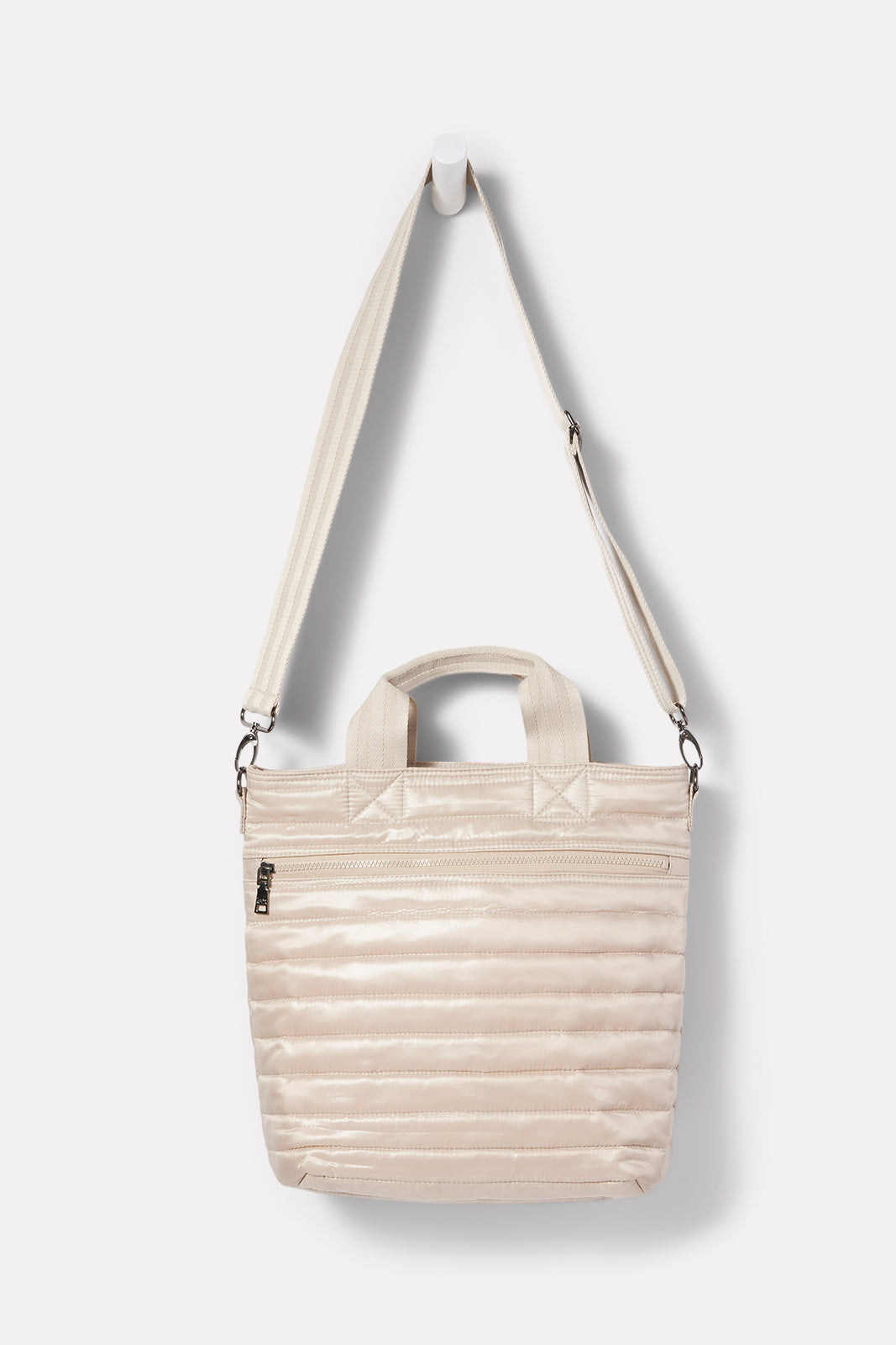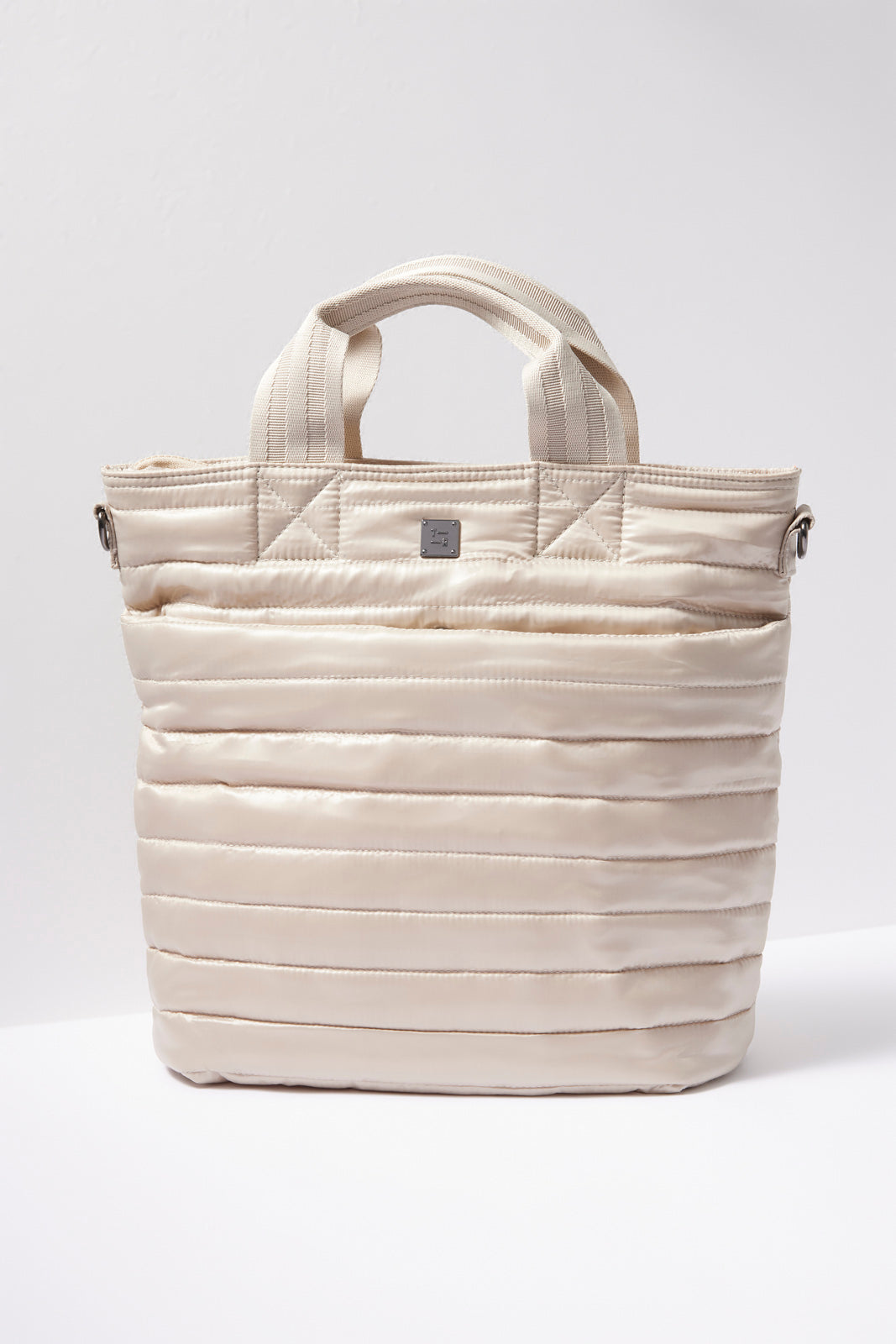 Carry your work-to-weekend essentials in this stylish Think Royln bag. The sleek, quilted exterior features a front slip pocket and a back zipper pocket, while the vibrant interior features a zipper compartment and mesh water bottle pocket. Go hands-free with the detachable, adjustable crossbody strap.