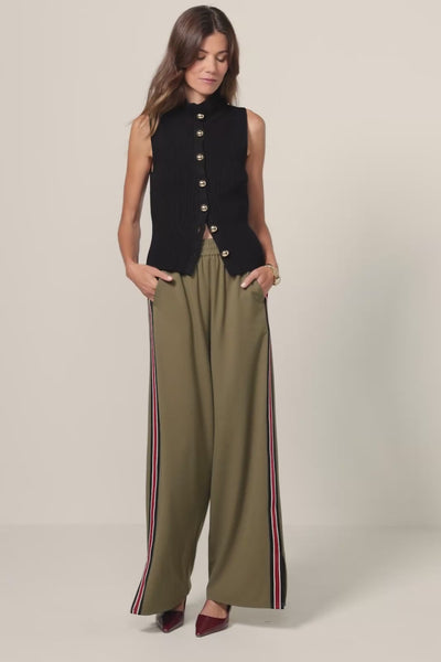 Crafted from luxe cotton and cashmere, the Ira Sweater Vest is adorned with oversized gold buttons, rib knit details, and a fitted silhouette.