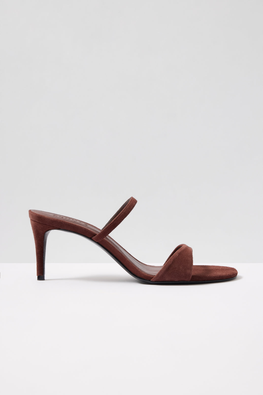 Give your night-out look a lift with the Jessica Mid Mule by Schutz. Finished in rich suede, these slip-on sandals feature a stiletto heel, round toe, and two-strap design.