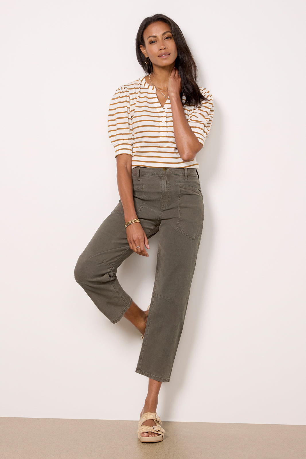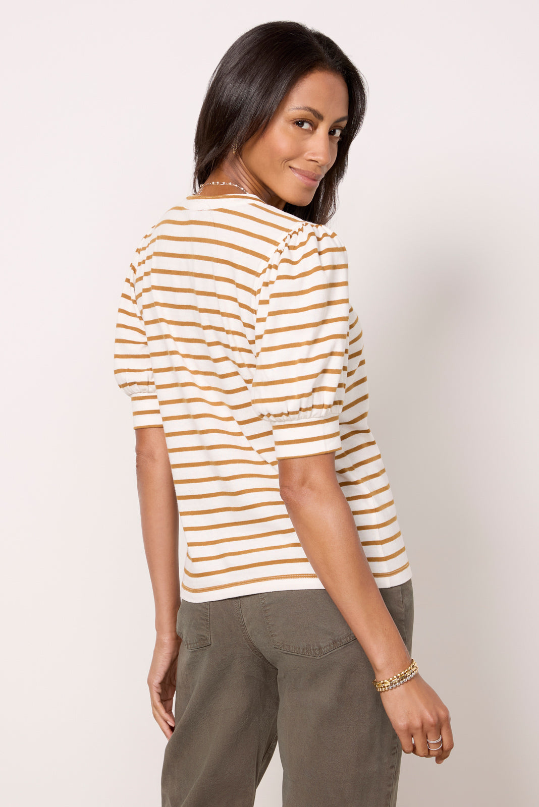 Elevate your everyday basics with the Jewel Top by Rails. Crafted in a Pima cotton blend, this tee features billowy short sleeves and a quarter-length button placket.