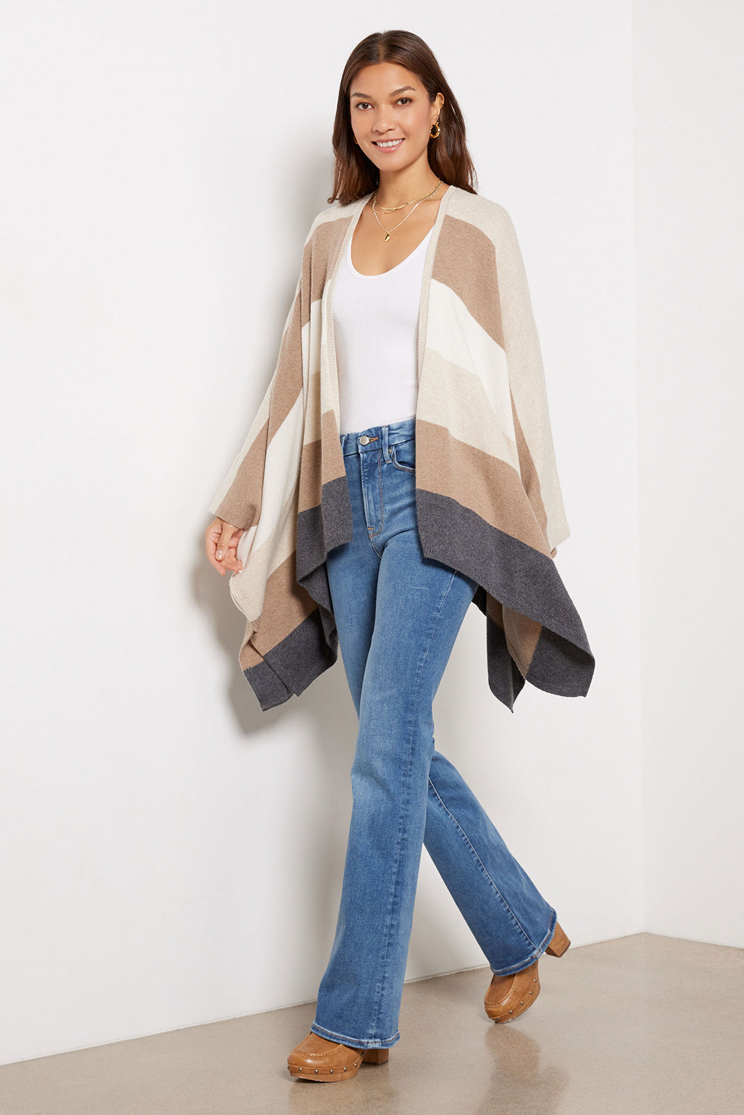A cozy go-to layer, this striped poncho by Velvet features a drapey, open-front silhouette knit from a soft merino wool blend. It's perfect for dressing up or down with any fall look.