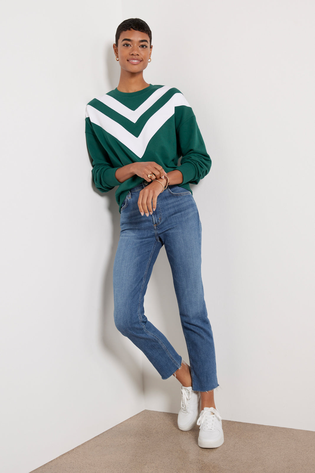 Chic and sporty, this varsity-style sweatshirt by EVEREVE is crafted in soft fleece fabric and features a relaxed fit, chevron stripes, and banding at the hem and cuffs. Pair with your favorite jeans, or add a vest and leggings for a casual-cool look.