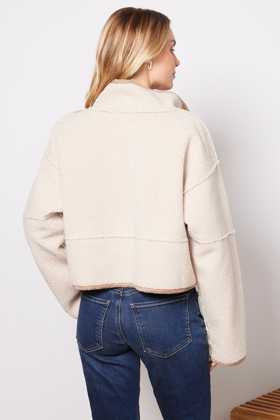 This reversible jacket by Velvet is the perfect layer for fall temps, featuring a cropped silhouette, stand collar, and snap closure. Pair it with your favorite jeans or cargo pants for a stylish, cozy look.