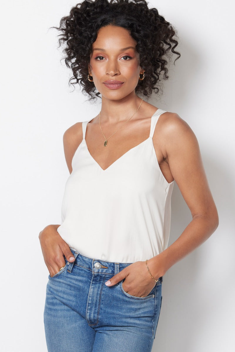 Satin fabric updates this sleek cami silhouette by EVEREVE featuring a flattering v-neckline, relaxed silhouette, and adjustable shoulder straps. Tuck into trousers, or keep it casual with cutoffs and strappy sandals.