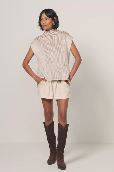 A modern silhouette defines the Lauren Plated Tank by Varley, featuring a soft Alpaca blend knit, a stepped hem, side splits, and fashioning details.