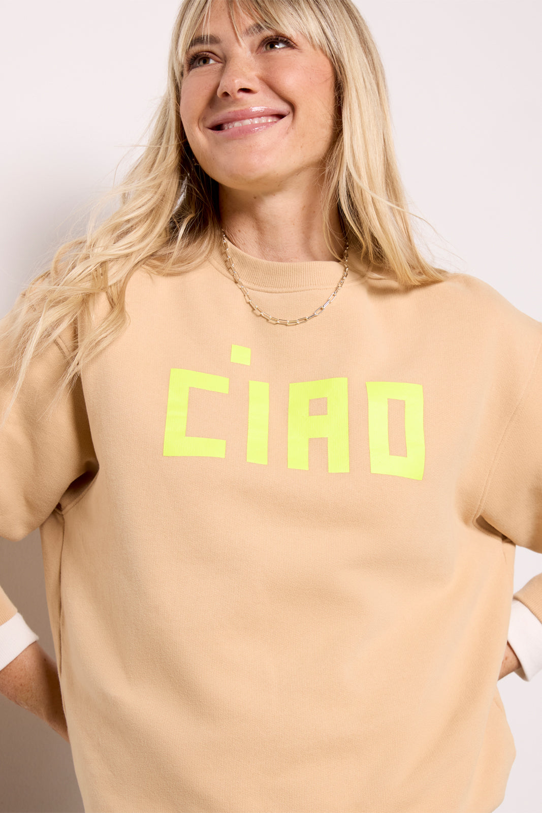 Designed with drop shoulders and neon "Ciao" lettering, this comfy-chic sweatshirt by Clare V. is crafted in soft fleece fabric with a crew neckline, relaxed fit, and banding at the hem and cuffs.