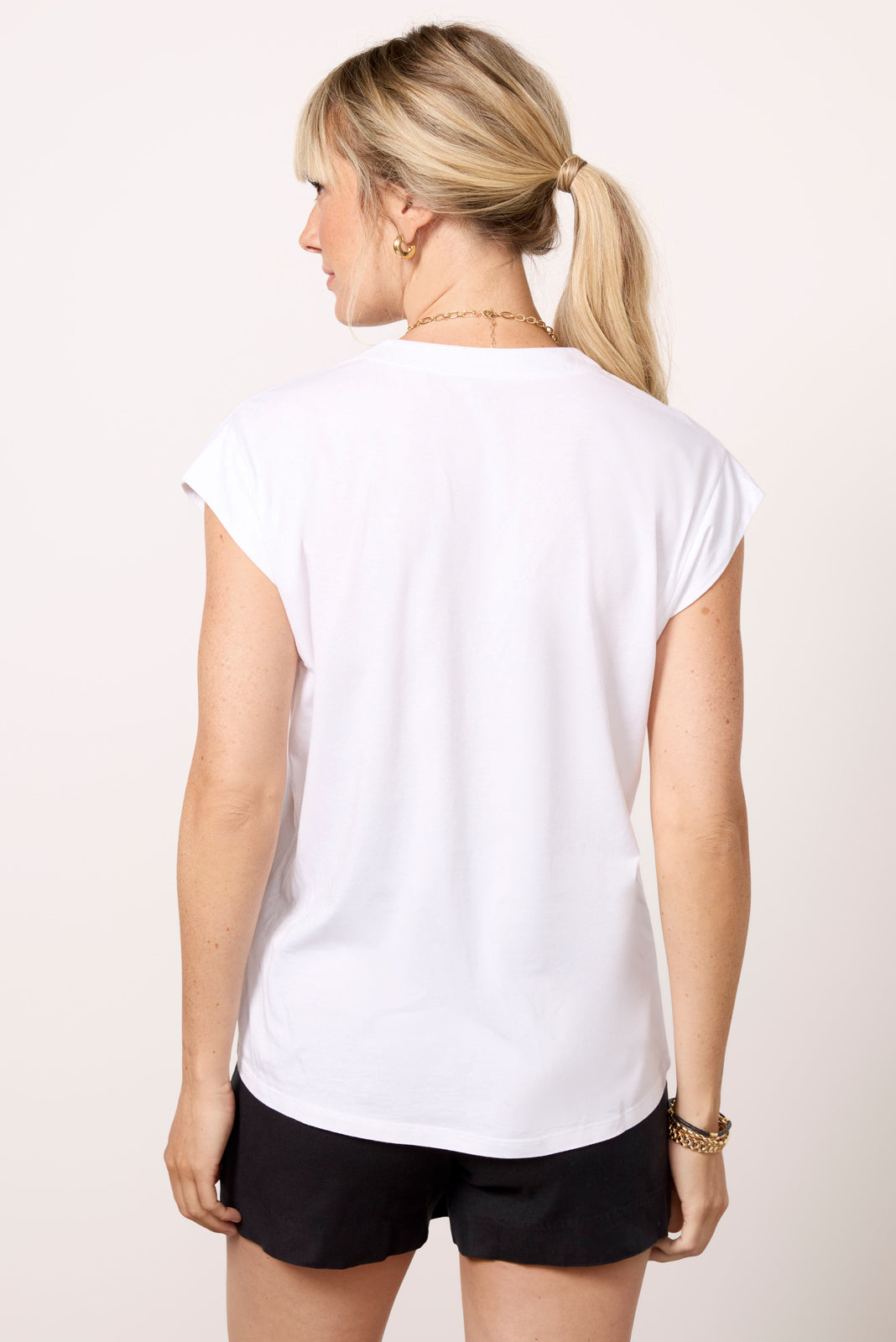 A flattering v-neckline defines this wear-everywhere tee by Frame featuring a relaxed fit, cap sleeves, and organic Pima cotton fabric. The longer length is perfect for pairing with denim or layering under sweaters, shackets, and blazers.