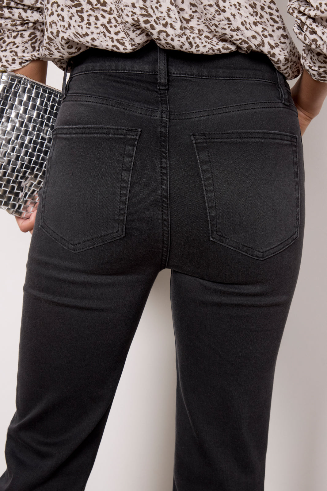 Crafted in soft stretch denim, the Le Sleek Straight jean from Frame features a high-rise waist, a clean black wash, and a straight-leg silhouette. Perfect for pairing with everything from tees to blouses.