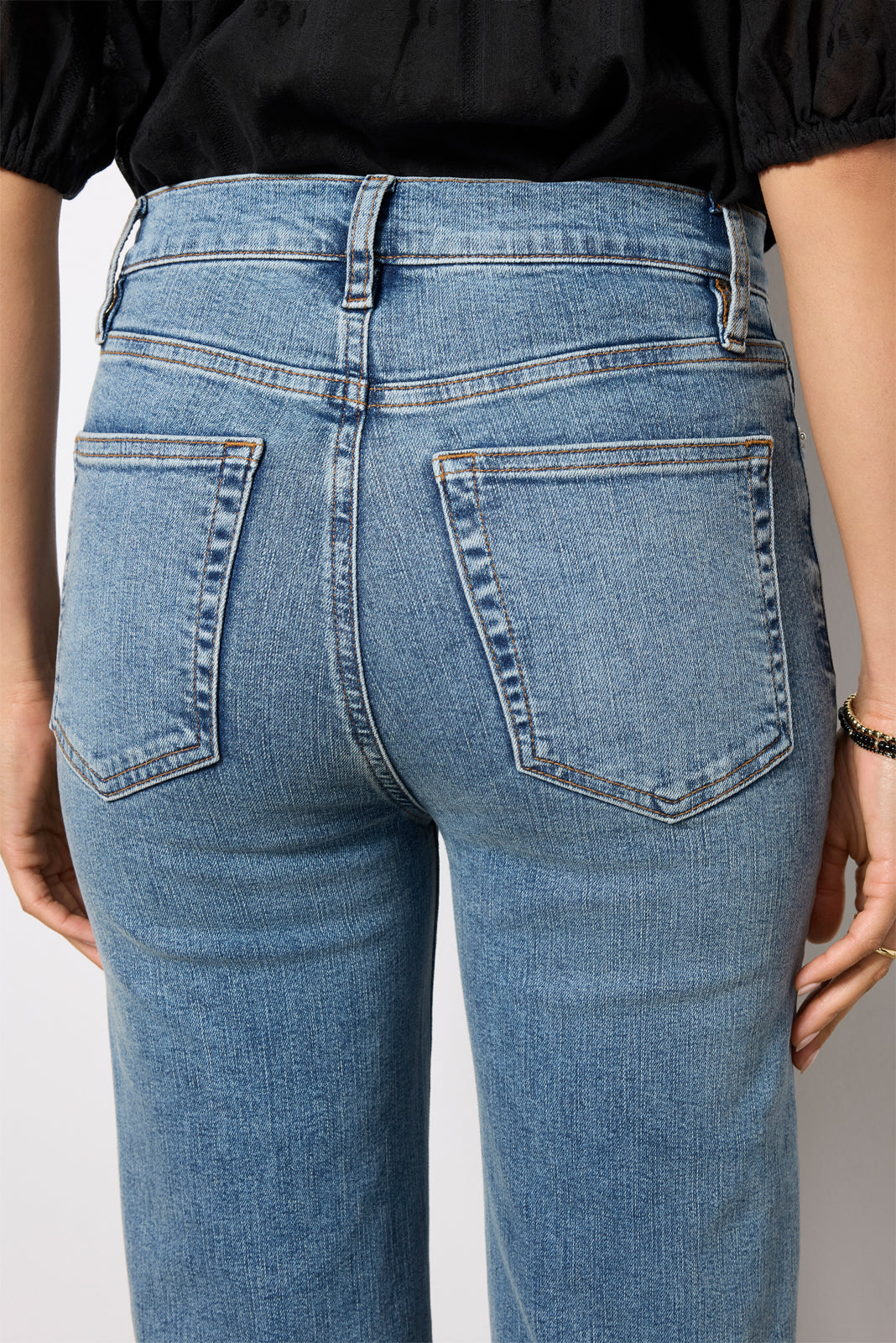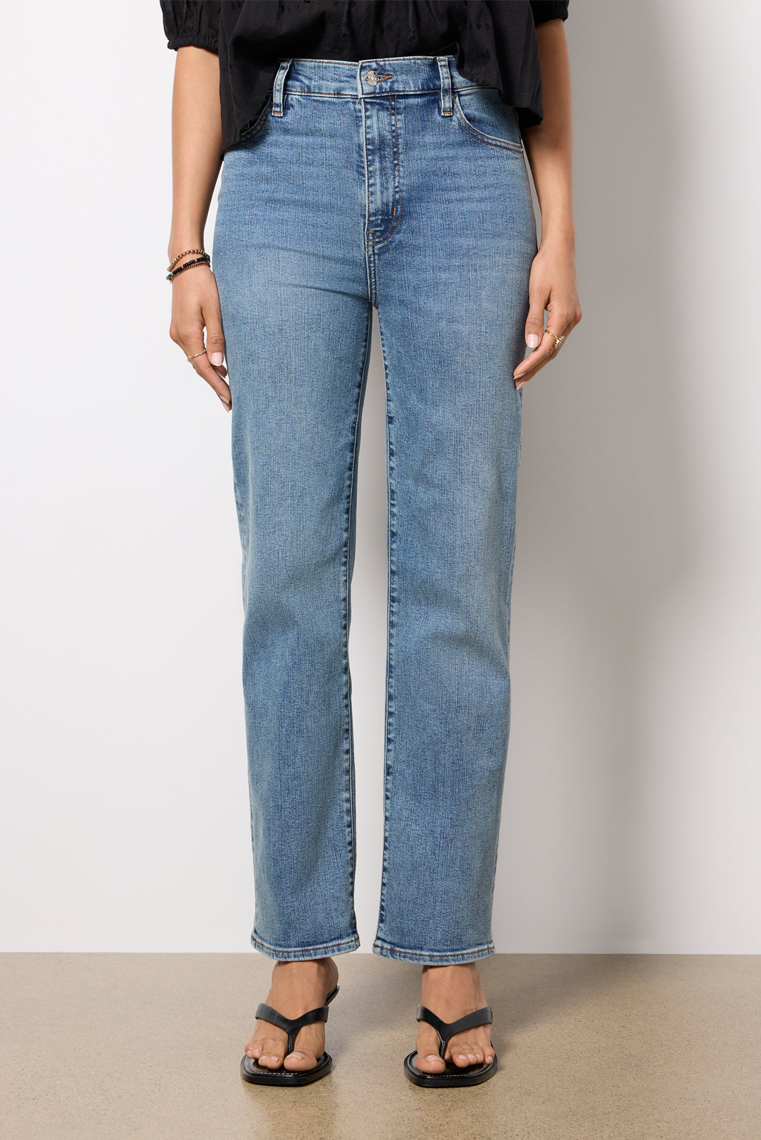 Perfect for wearing day or night, these versatile straight leg jeans by FRAME are crafted from sustainable comfort-stretch denim and feature a flattering high-rise fit, medium blue wash, and clean hems.
