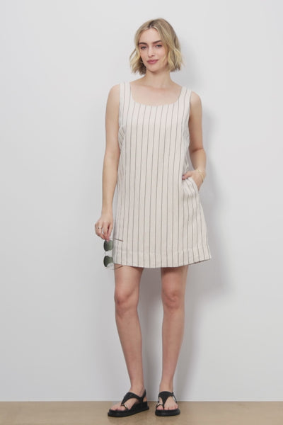 Top off your warm-weather dress collection with the Leah Shift Dress by EVEREVE. This striped linen-blend dress features a relaxed, sleeveless silhouette with side pockets and a smocked back detail.