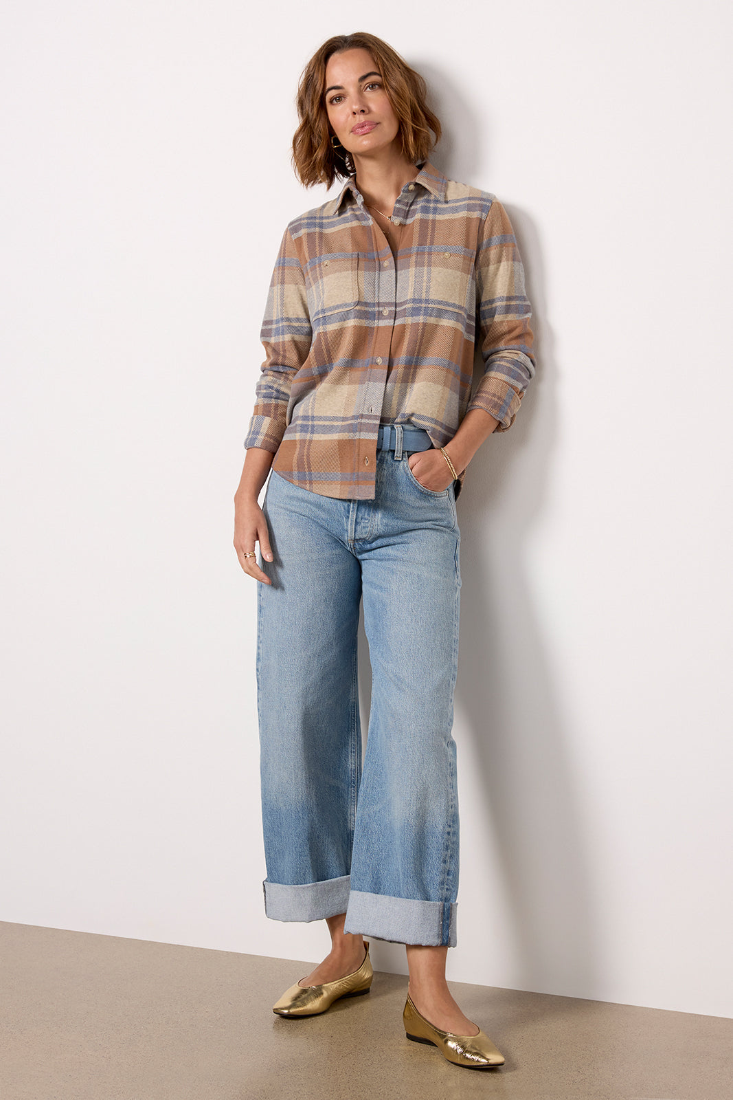 Crafted in the softest sweater knit fabric, you’ll be reaching for this Faherty button-down again and again. Perfect alone or layered, this cozy plaid shirt features a shirttail hem, long sleeves, and patch chest pockets. Front-tuck into your favorite denim or wear unbuttoned over a tank.
