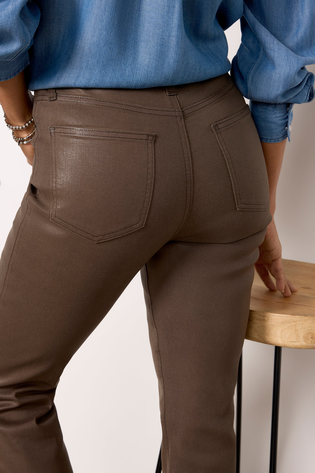 Finished in comfort-stretch coated denim, these stylish bootcut pants by Pistola feature a high-rise waist, slit front hems, and vertical seam details. Style for the season with a sweater or denim button-down.