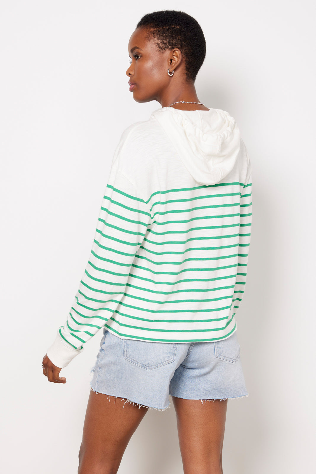 Perfect for a laidback summer look, this striped sweatshirt by EVEREVE is crafted in lightweight cotton slub fabric with long sleeves and an adjustable drawstring hood. You'll be wearing it all season with your favorite cutoffs and sandals.