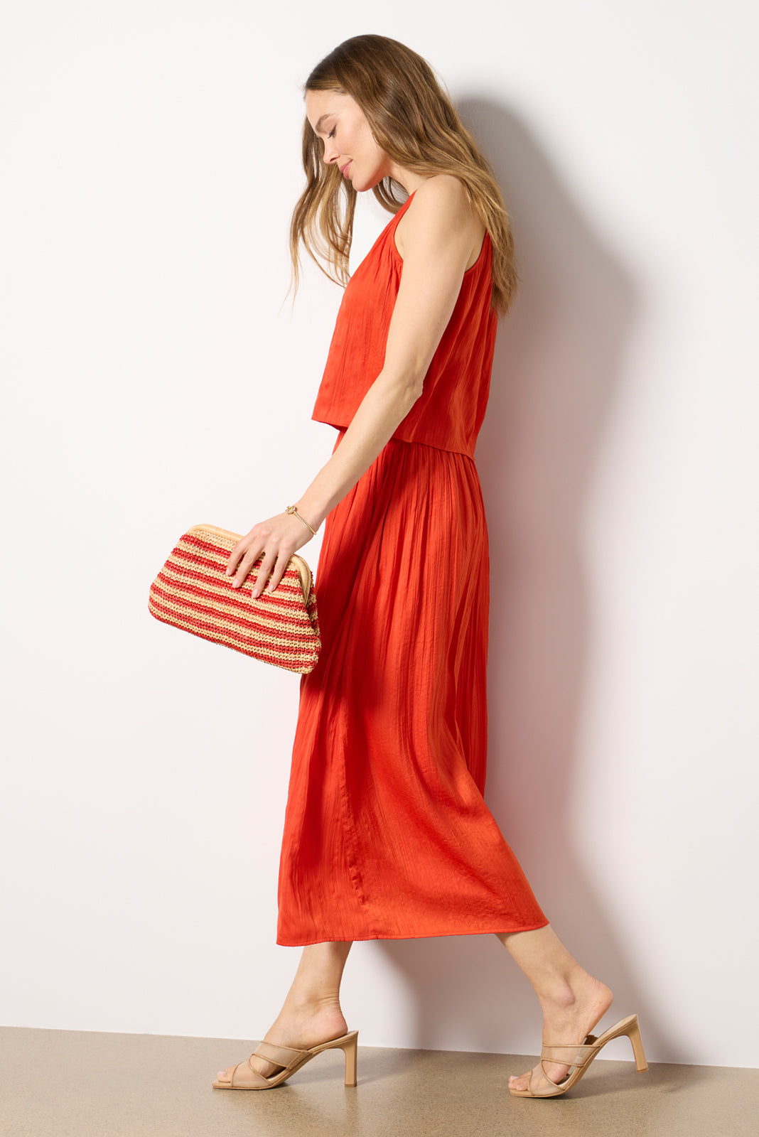 This gorgeous satin tank by Z Supply will instantly elevate your summer wardrobe, featuring a swingy cropped silhouette with a back keyhole button closure. Make it a two-piece set with the matching Sunset Satin Pant or Claire Satin Midi Skirt.